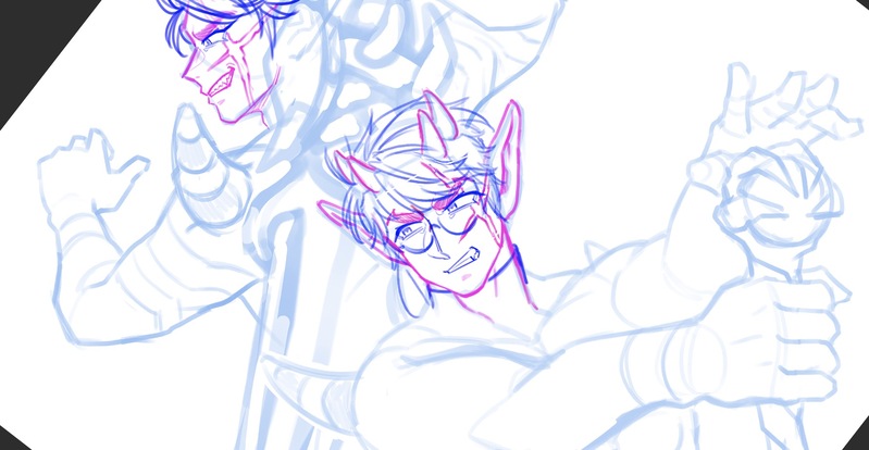 ニールの新しい装備描こ〜!と思って描き出したのに何故この構図にした???👊全然みえませんけど???仕方ないからとりあえずいつもの服で描く😂