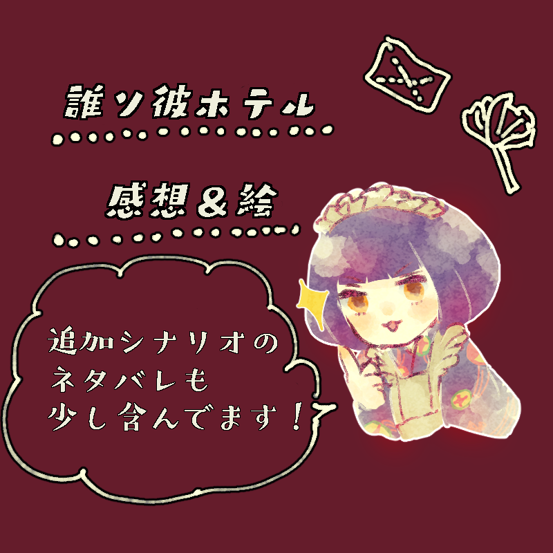 うめの☆quiet followSPOILER誰ソ彼ホテルをクリアしたので、だだっと感想。8割方おおそとまさきの事ばっかりで笑った。そして字が汚い。絵の練習も兼ねてたので、絵柄が安定してないです。#誰ソ彼ホテル ##考察・感想 ##ゲーム show all(+9 images) Tap to full screen (size:800x800).Repost is prohibited Let's send reactions! freqpopularsnackothersPayment processing Replies from the creator Follow creator you care about!☆quiet follow うめのSPOILERHookah Hazeは良いぞ…true Routeネタバレありのため、クリア後にご視聴ください! 4 うめのSPOILERSFC版プレイ済みで、ライブアライブリメイク版のプレイ日記。3枚目は女の子描くの楽し~!!な落書きべる。 3 うめのSPOILER十三機兵のプレイ後感想&考察まとめです。がっつりネタバレしているのでご注意。 7 うめのSPOILER大人組の時系列を一部推測(しっかりと語られていない為)を交えつつまとめました。ネタバレ中のネタバレしかないのでパスワードかけました。例の囚人番号です。クリアしてから8、9ヶ月経ってるから…もうすぐ1周年ですね!公式から時系列まとまっている本が出ましたね!! 2 うめのDONETRPGインセイン『さらば、また来世!』PC①:道子/PL:めりこさんPC②:ちとせ/PL:うめの※がっつりシナリオのネタバレがあるのでご注意ください!印象に残ったところの漫画レポと、立ち絵詰め込み。 6 うめのSPOILERうわーー、ソウカンは性癖に突き刺さった。こういう拗らせ男子と頑張る系女子で、更に年の差カプに弱いんだ…ソウとカンナしか居ません。#キミガシネ 7 related works ちゃづDONE描いたやつその1※茨あん、ジュンあん 17 きくちゃんDOODLEサタン様犬好きかと思いきやロクサーンみたいなパターンもあるのでやっぱ人外思考なのかな~ ココノカSPOILER幻覚なので全くネタバレではないけど1072話の発言ネタ わたさくDOODLE nnnnnnoodderaDONE【腐向け】チャバが酔ってハ崎さんに甘えてる漫画。ハ崎さんがトイレに行くのを我慢していたりする。 4 きくちゃんDOODLEサタン様犬好きかと思いきやロクサーンみたいなパターンもあるのでやっぱ人外思考なのかな~ 2watoyoDOODLE【朝のボールペン落書き】【日楠♀】【先天性女体化】日高先輩×男装後輩サキュバス家系楠ちゃん。海編。本当に気にしてるのは。 べこDOODLEピンク色のバレンタインなヨウグズ🍫 ちゃづDONE描いたやつその1※茨あん、ジュンあん 17