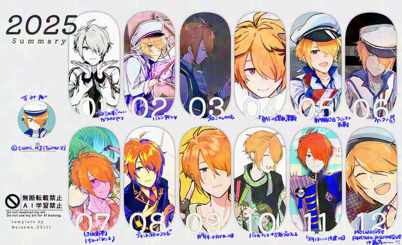 sumi_HJ☆こそフォロできた2026/02/21~02/22 ゆるいパバステにて公開(常設展です)2025/05~2026/02イラストログTwitter・Bluesky・その他で公開したものがほとんどですが、初公開のラフなどもあり順番はごちゃごちゃなのでそんなこともあったな〜と懐かしんでいただけたら嬉しいです。 すべて表示(+53枚) タップで全画面(原寸:2310x1410)無断転載禁止 リアクションをたくさん送って応援しよう! よく使う人気おやつその他支払処理中 作者からのリプライ 気になる人をどんどんフォローしよう!☆こそフォロ sumi_HJできた2026/02/21~02/22 ゆるいパバステにて公開(常設展です)2025/05~2026/02イラストログTwitter・Bluesky・その他で公開したものがほとんどですが、初公開のラフなどもあり順番はごちゃごちゃなのでそんなこともあったな〜と懐かしんでいただけたら嬉しいです。 54 sumi_HJできたパバステ現地4thで頒布した無配と新規絵です!3枚目まではネップリに登録したので、印刷してぜひ遊んでみてください‼️ネップリ TYWWUB2Z4B(ファミマ) 4 sumi_HJらくがき毎日この幻覚にさいなまれているF-LAGS 10thアニバCD連動ストーリー「自分の理由」の序盤のネタバレになる可能性あり(最後まで読み終わっていないので断言できない…) sumi_HJらくがき【すごいネタバレ】ぴゅあくる東京公演今週末〜月曜日まで!ということで、見に行った日の夜に描いたレポをのせます【すごくネタバレ】今後ていすてぃんぐ公演を見る可能性がある人は、公演を見てからこれを見た方がいいと思います。【ネタバレがある】篭手切のことが大好きで、彼の夢がまた1つ新しい形で叶ったことが嬉しくてたまらない人が描いたレポです。【ネタバレ注意】 sumi_HJできた2024/06/08~09 パバステ6にて展示(常設展です)2023/12~2024/05 イラストログ下に行くほど古いです 37 sumi_HJらくがきどネタバレBeit CODストーリーとファンコンストーリー両方ネタバレ!!!!!!核心のネタバレある!ピエールの話!読んだ人はどうぞ!未読の人はぜひストーリーを読んで欲しい…