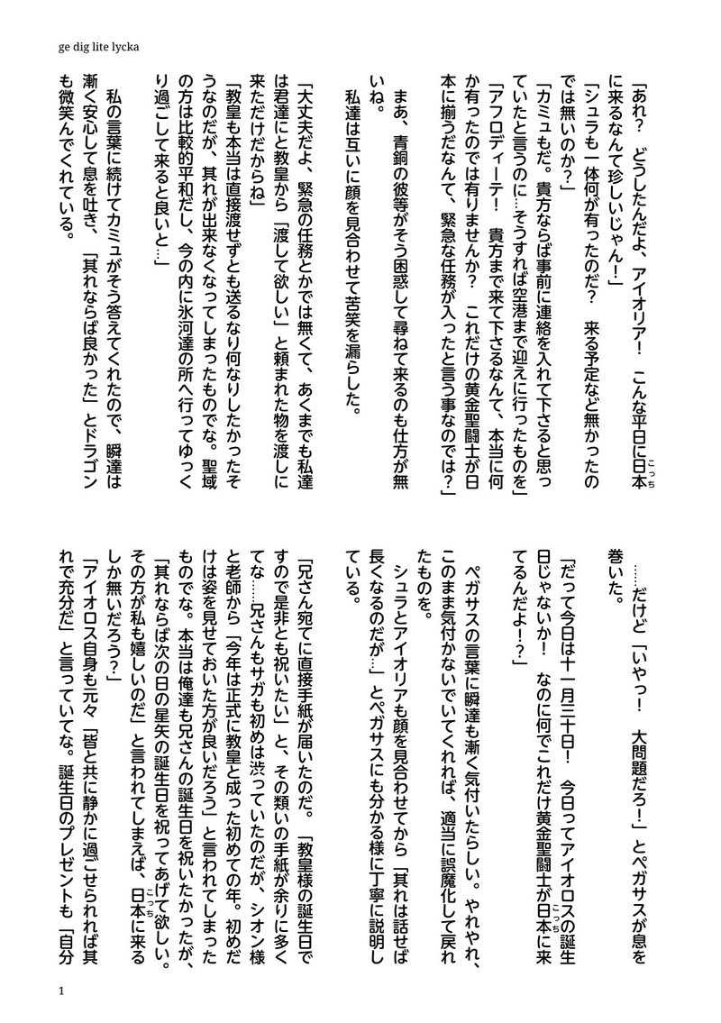 ChidoriKure☆quiet followDONEロス受けthemesさんお題『プレゼント🎁』幼教皇ロス兄さんの一応♑♐時空の話です。CPはシュラロスですが、お誕生日おめでとう!な暖かい話を私なりに目指してみました😊💕♓視点です。青銅の少年達に黄金のお兄さん達と結構出て来ます☺11月30日、ロス兄さん。12月1日、星矢。誕生日おめでとう!!😆💕 show all(+15 images) Tap to full screen (size:1266x1797).Repost is prohibited Let's send reactions! freqpopularsnackothersPayment processing Replies from the creator Follow creator you care about!☆quiet follow ChidoriKureDONEロス受けthemesさん お題『ミルク(絵文字が無かったのでそのままです😓💦)』すっかり遅くなりましたor色々と迷走するだけ迷走した結果、「これ以上は無理」と言う事で散々迷っていた毒花兄さんのとある一つの結末を書かせて頂きました。CPは♊♑♌⇨⇨⇨⇦♐です。回想でさっくりですがR18です。三人に溺愛されているロス兄さんが苦手な方はお気を付け下さいね😅💦 6 ChidoriKureDONE4日程遅れてしまいましたが、3月10日はアフロディーテの誕生日!と言う訳で、アフロディーテと幼教皇ロス兄さんの【♓♐時空の結末含みなお誕生日おめでとう】小説になります!(∩´∀`∩)ずっと結末は同じ展開にしようかと思って大体の構想を練っていましたが、選んだ相手によって分かる事と分からない事も違えば、未来も変わって来るよなあ…と思い直しまして、二人はこんな感じになってしまいましたσ(^_^; 14 ChidoriKureDONEロス受けthemesさん お題『アレルギー』通常蘇り設定のロス兄さんです。前回、前々回の「毒花」だと言われて困惑or少しノイローゼ気味なロス兄さんの話の続きになります(これだけでも読める様に書いたつもりですが、分かり難い場合は申し訳御座いません…!)♊♑♌→♐です。前半はアフロディーテ、後半は女神視点になります。 16 ChidoriKureDONEロス受けthemesさん お題『バレンタインデー🍫』前回お題『毒』にて書かせて頂いていた通常蘇り設定ロス兄さん(続き)になります。CPは有りませんが、♊(兄)♑♌⇨♐になっています。視点はミロ君です。無意識に男三人を翻弄させてしまっている見た目は大人な十四歳なロス兄さん…って改めて書いても色々やばいなと思いました😅💦青銅達にも懐かれてるロス兄さんが大好きです! 8 ChidoriKureDONE2月7日はカミュ君の誕生日!3日程遅れてしまいましたが「誕生日おめでとう」短文になります(∩´∀`∩)何気にシュラ君の誕生日も(推しなのに!)現在進行形で遅れておりまして、其れが悔しいからとぺら本作ろうと原稿してますので、其処にカミュ君まで増やす訳には…とどうにか仕上げてみました☺💕週末の息抜きにでも楽しんで頂ければ幸いです! 5 ChidoriKureDONEロス受けthemesさん お題『毒』通常蘇り設定のロス兄さん視点の短文です。シュラ→ロスですが、サガ兄さんとリア君にも同じ様に想われているけれど、本人は良く分からないから少し困っているかも…な話です。軽く馬乗りになって『ちゅー』している程度の、個人的にはR15かな?と思っているので、ワンクッションも付けていません😅💦 7