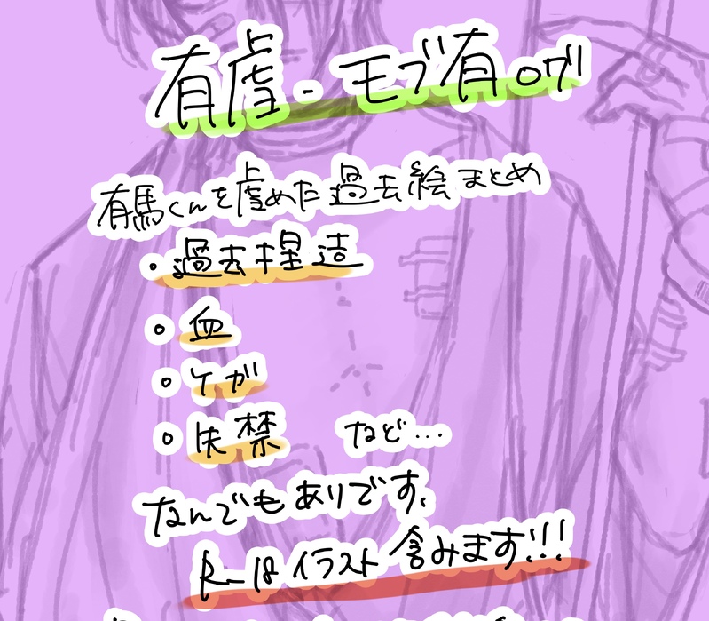 srk_xxxx☆quiet followDOODLE🔞モブ有/有虐🔞過去絵まとめ以下の要素が含まれますので、苦手な方は閲覧をお控えください。・モブ・血まみれ・過去捏造・ボコられ・嘔吐・失禁・胸糞なんでも大丈夫な方向けです show hide show all(+41 images) Tap to full screen (size:2894x2532).Repost is prohibited Let's send reactions! freqpopularsnackothersPayment processing Replies from the creator Follow creator you care about!☆quiet follow srk_xxxxDOODLE新キャストを受け入れてないマンが書いているので、新ステ大好き!な人は読まないでください。褒めてはいるけどマイナス意見もあります。本編ネタバレあるので観劇まだの方は要注意⚠️ 2529 srk_xxxxINFOやがあり合同誌「泡沫」サンプルパスワードはTwitter固定ツイートをご参照ください。2枚目〜3枚目…漫画(黒木) 谷ケ崎と有馬が水族館デート。水がトラウマの有馬くんが壊れちゃうお話。4枚目…小説(碧さん) なんでもゆるせるかたむけ人間×人魚 / スリット姦 / モブの割合多 / 原作無視 / 人によりバッドエンド※たまご、不老不死ありません5枚…カラー口絵(黒木) 5 srk_xxxxPAST2023.10発行 Web再録【その銃口を私の胸に突きつけて、──】じくあり R18・過去捏造・流血・義父×有馬・モブ×有馬パスワードはリットリンク、またはTwitterをご確認ください 39 srk_xxxxDOODLE有馬中心落書きまとめ有馬以外、じくあり、モブあり、夢、パロ等なんでもあり。 17 srk_xxxxDOODLE🦋2024.05.04頒布本サンプル🦋東4ホール さ20b【MY DOLL】・時空院丞武×有馬正弦・A5/全20p・R18(ぬるい) 6 srk_xxxxDOODLEヒプステtrack1から追ってた老害のNE感想読んでも幸せにはならないと思う。NE良かった!って人は読まない方がいい。 2937 recommended works arigatona101DOODLE0721 2 ベビーチーズDONEロゴス先生 whip_n_naenaePASTFreaks.. [OC] 涼風リュウDOODLE2025.1.10 審神者就任六周年です✨久々の水彩に塗り方迷子←PCで描き塗りもしていないから…ヤバいっすなぁ( ‧̣̥̇⁰▿⁰) mizuDOODLE 3 uragiripanPROGRESS描いてる諸蓑漫画の進捗です。出来たら全部、支部に投げるつもりです。初めてポイピク使って勢いで出してます。変なとこあったらすみません。 2 touya_525DONEgta3救急と鴉の転生if(学パロ)#1です。本当に好き勝手妄想してるだけなので寛大な心でよろしくお願いします。⚠️何でも許せる方向け⚠️※ご本人さまと無関係です。別世界のキャラクターとしてご覧ください。パスは2人の数字を足した数。 2 EGODOODLEラスボス練習難しい!!!!なんもわからん!!!!! 2 417nilPROGRESS2/9ユキモモR18新刊サンプル一部(脱稿してません)ページ繋がってないですよろしければ部数アンケートご協力ください( https://forms.gle/w7m8cfWVX6DG5J8U8 ) 8