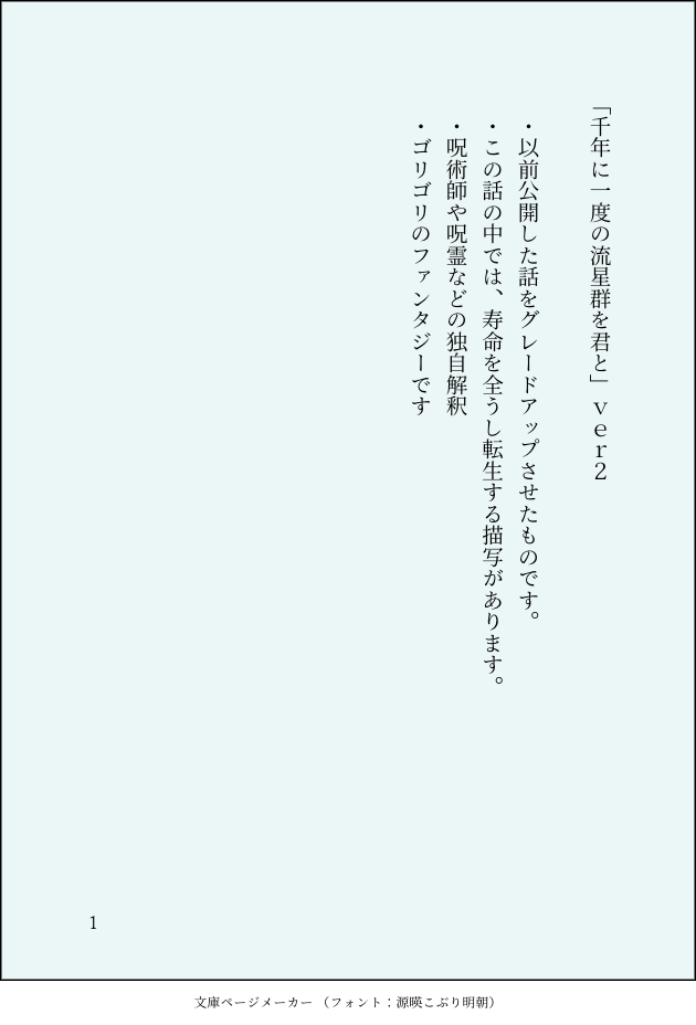 かばぬ☆quiet followDONE💜🧡「千年に一度の流星群を君と」ゴリゴリゴリのファンタジー🦍です。💜が見ている世界を考えてみました。左右なし注意書きは1枚目にあります。眠れない夜のお供は白いクジラという変人字書きの妄想。 #Myshu #Shusta show all(+22 images) Tap to full screen (size:630x928).Repost is prohibited Let's send reactions! freqpopularsnackothersPayment processing Replies from the creator Follow creator you care about!☆quiet follow かばぬDONE「きみの世界」💙💜オンリー展示作品学パロ、不思議な夢から始まる2人の恋のお話。挿絵はuru(@uru_urux)さんに描いて頂きました!ありがとうございます!!!!無限に感謝! 30 かばぬDONE💙💜第3話「天使の翼」挿絵はuru(@uru_urux)さん⚠️番外編🔞は@wA_Awingにて展示していますが、成人済みの方のみ閲覧可です。プロフカードをよく読んでからフォローしてください。https://poipiku.com/5079052/8259042.html 11 かばぬDONE💙💜第二話「ぼくを捕まえにきて」挿絵はuru(@uru_urux)さんです。素敵な絵をありがとうございます。3話▶︎ https://poipiku.com/5079052/8258909.html 13 かばぬDONE💙💜「君を捕まえにきた」ハピエン天使パロ人間と天使の淡く切ない恋の物語素敵な挿絵はuru(@uru_urux)さん💙💜オンリー展示作品⚠️注意事項は1枚目にて全3話+番外編の長編になります。第2話https://poipiku.com/5079052/8258808.html 24 かばぬDONE💛💜♀ マフィア×JK「船、密会。」💜ファミリー登場。強く生きるJK。 5228 かばぬDONE💜🧡「千年に一度の流星群を君と」ゴリゴリゴリのファンタジー🦍です。💜が見ている世界を考えてみました。左右なし注意書きは1枚目にあります。眠れない夜のお供は白いクジラという変人字書きの妄想。 23 related works 一个离DONE童话pa,人鱼Shu × 鸭子Mysta 梗源→https://b23.tv/vkUde98 咪说自己唱歌像鸭子他哥唱歌像人鱼。 全文9k+,ooc有,祝大家看得开心! 10384 Popi-smileTRAINING是一些shusta构想 感觉香香呜呜 一个离DONE※现pa,咪的毕业回上两个人约好一起去澳洲玩,切片→https://b23.tv/oNm8DSk 我趁机发挥继续造谣 主播Shu × 自由的侦探Mysta,公路文,意识流,没什么剧情的短打。 ooc有,希望大家看得开心!*Kambera源自澳洲古老的恩古纳瓦(Ngunnawal)土著语言,寓意为“汇合之地”“相聚的地方” 4644 DDslimeTRAINING👟✒️👹🦊…🦁️👟…?總之就是CP亂燉校園AU狗血的八點檔劇情 6007 DDslimeTRAINING👟✒️👹🦊總之就是CP亂燉校園AU狗血的八點檔劇情由於還要上課什麼的更新比較隨緣 5585 一个离DONE※架空科幻pa,仿生人Shu × 科学家 Mysta 基线测试设定参考《银翼杀手2049》,文中的诗来自亨利希·海涅的《大海有它的珍珠》 是离式HE 全文1.6w+,祝大家吃得开心! 18182 一个离DONE※架空校园AU,先婚后爱,两个大学生睡了一觉然后稀里糊涂多了一个男朋友的故事,有生子。 ooc有,本质是个没什么逻辑的小甜饼,希望大家看得开心! 11542 一个离DONE※古风仙侠pa,HE,仙尊Shu(徐阳明) × 狐妖Mysta(胡小咪),养成系。是从Shu的新衣想到的梗。有Ike客串 9315 3OmEBhQqBeAuCQaDOODLE 1721