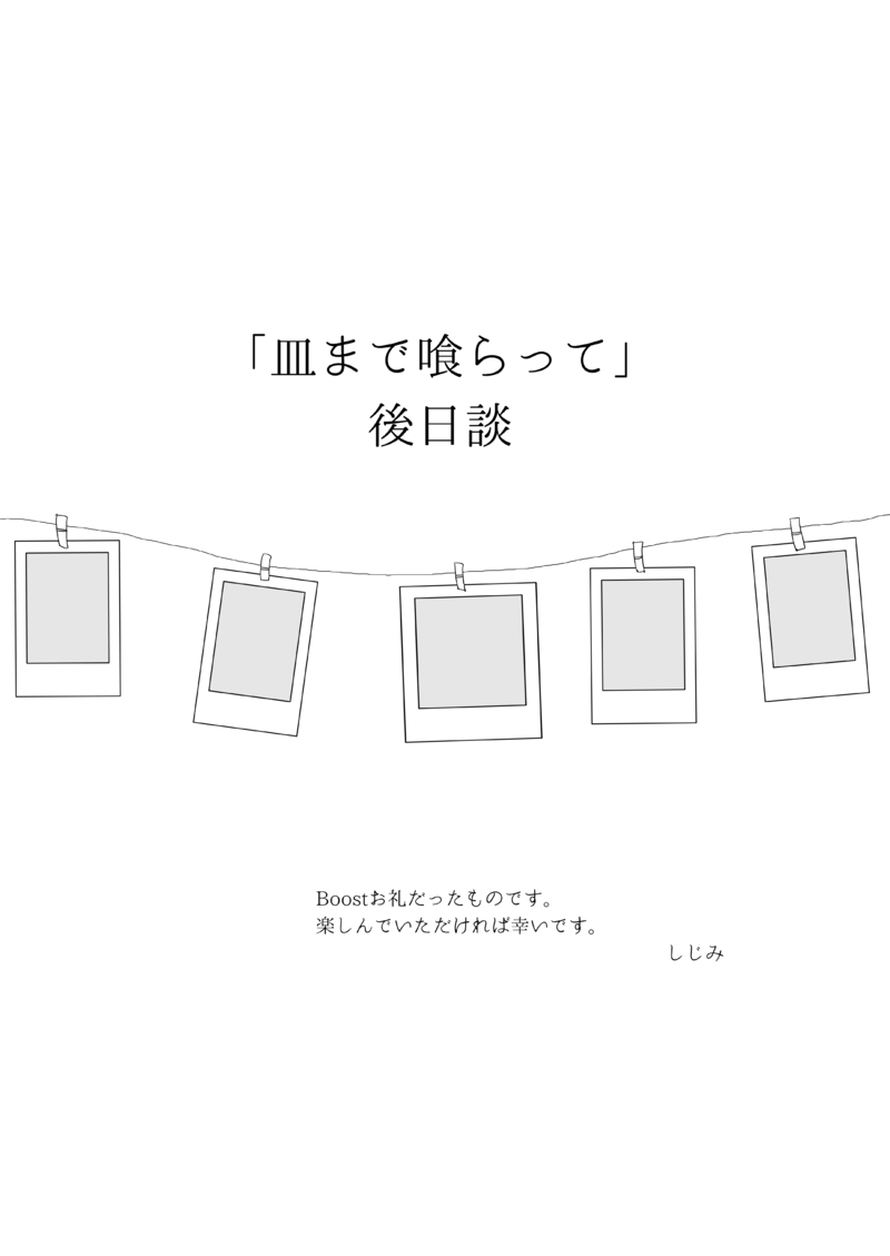 shijimishh☆quiet followDONE【展示①】ニル主「皿まで喰らって」の続きになります。Boostお礼漫画でした。 show all(+5 images) Tap to full screen (size:4299x6070).Repost is prohibited Let's send reactions! freqpopularsnackothersPayment processing Replies from the creator Follow creator you care about!☆quiet follow shijimishhDONE「犬も歩けば」サンプルニル主P28/A5/500円※スマートレターでの発送となります。 匿名配送は扱っておりません。 10 shijimishhDOODLEテネメンとpkmnとニル主 3 shijimishhDOODLEホブモルとpkmn 3 shijimishhDONE2023年かこつけバニー shijimishhDONEいいおっぱいの日のニル主です!!! 2 shijimishhDONEさわマル展示 ニル主漫画既刊「たぶん彼、かっこ悪い僕が好きなんだと思います」のおまけ漫画です。単品でも読めます。 2 recommended works ochimpobeamDOODLE100万回描かれてそうな気がするけど自分は描いてないから描いた#Neiltagonist#ニル主 yokusaruruTRAININGニル主、アイ主 2 サガミトオルDOODLE君と目が合う瞬間GIF yokusaruruDOODLEニル主。アイニル。 2 ponta_cinemaDOODLEニル主。付き合ってない。 ponta_cinemaDOODLEニル主。めりくり!キス待ちヤドリギネタは某ドラマから。 ponta_cinemaDOODLE生きて帰る ponta_cinemaDOODLEニル主。いたいのいたいのとんでいけ。 ponta_cinemaDOODLE 2