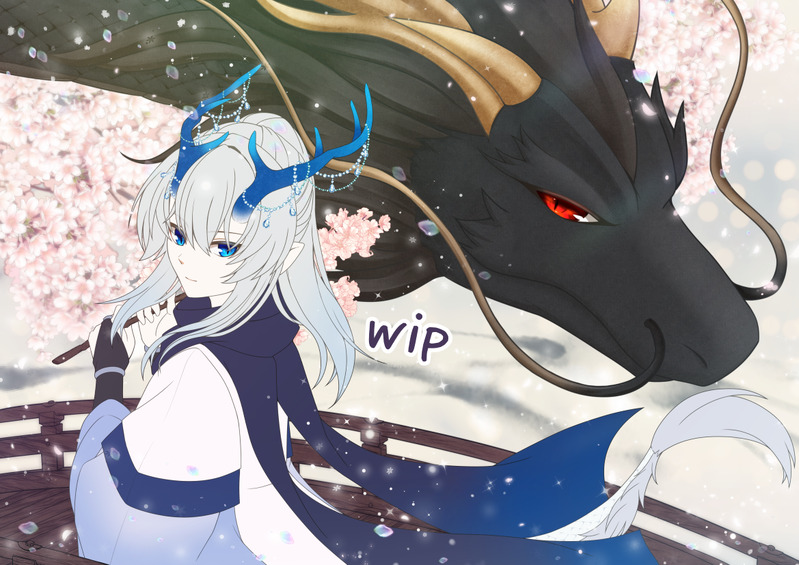 年賀絵の進捗。龍の塗りまで🐉