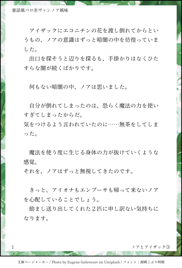 Hiro29181824☆quiet followMOURNING童話風パロ⑧ヴァンノア風味ノアとアイザック③本編最終話です。勝手ながら村の皆様の白コウモリのあぴに萌えに萌えて書き始めました。拙い文章ですが書ききれて良かったです🙏 #ヴァンノア show all(+8 images) Tap to full screen (size:630x928).Repost is prohibited Let's send reactions! freqpopularsnackothersPayment processing Replies from the creator Follow creator you care about!☆quiet follow Hiro29181824MOURNING童話風パロ⑧ヴァンノア風味ノアとアイザック③本編最終話です。勝手ながら村の皆様の白コウモリのあぴに萌えに萌えて書き始めました。拙い文章ですが書ききれて良かったです🙏 9 Hiro29181824MOURNING童話風パロ⑦ヴァンノア風味ノアとアイザック②あと少しで本編終わる〜パロという言葉を盾にキャラ崩壊しまくりだけどここまで来たらなんとか書き上げたい… 10 Hiro29181824MOURNING童話風パロ⑥ヴァンノア風味ノアとアイザック① 5 Hiro29181824MOURNING童話風パロ⑤ヴァンノア風味血族ノアとエコニチンの花今回は短め、ノアの頑張り回です。今回の話に合わせポイピクの童話風パロ②は一部分訂正してます。 5 Hiro29181824MOURNING童話風パロ④ヴァンノア風味血族ノアと青年アイザックやっと折り返し〜予定よりどんどん長くなってく💦この本編終わったら番外編でちょっとえっちなやつ書くんだ_(:3 」∠)_ 7 Hiro29181824MOURNING童話風パロ③ヴァンノア風味白コウモリのノアと森の仲間達ハロウィン全然関係ないけど前回の続き。今回は森の仲間回でバンヘル出ません💦趣味に偏り過ぎてのあぴが無知っ子になってしまっているので苦手でない方だけどうぞ🙇♀️ 9 related works Hiro29181824MOURNING童話風パロ⑧ヴァンノア風味ノアとアイザック③本編最終話です。勝手ながら村の皆様の白コウモリのあぴに萌えに萌えて書き始めました。拙い文章ですが書ききれて良かったです🙏 9 Hiro29181824DOODLE 1606 Hiro29181824DOODLE正気に戻る前に投稿するんだ!お茶おーいーしーい!!パス:ヴァン・ヘルシングのファーストネームをカタカナで。 6 Hiro29181824MOURNING童話風パロ④ヴァンノア風味血族ノアと青年アイザックやっと折り返し〜予定よりどんどん長くなってく💦この本編終わったら番外編でちょっとえっちなやつ書くんだ_(:3 」∠)_ 7 Hiro29181824MOURNING童話風パロ②ヴァンノア風味白コウモリのノアと青年アイザック 8 Hiro29181824MOURNING童話風パロ⑤ヴァンノア風味血族ノアとエコニチンの花今回は短め、ノアの頑張り回です。今回の話に合わせポイピクの童話風パロ②は一部分訂正してます。 5 Hiro29181824DONE両片思いセ○レ彼岸SSパスワード:18歳以上?(英語小文字3文字で) 7 Hiro29181824DOODLE 2789 Hiro29181824MOURNING童話風パロ⑦ヴァンノア風味ノアとアイザック②あと少しで本編終わる〜パロという言葉を盾にキャラ崩壊しまくりだけどここまで来たらなんとか書き上げたい… 10