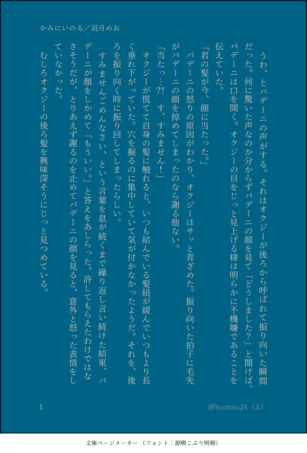 羽月めお @homeo24 文字書きでした。pixivにもう少しあります。https://www.pixiv.net/users/3424286 ☆quiet follow Yell with Emoji POIPOI 13