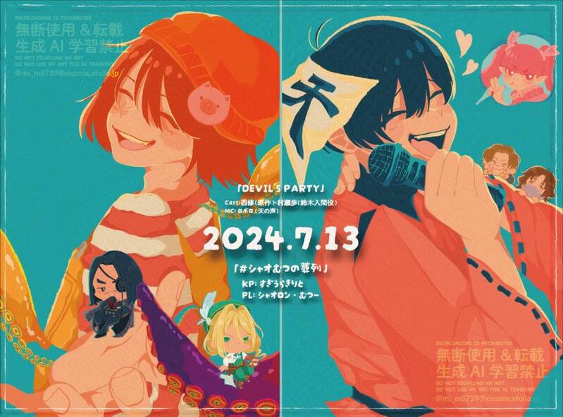 mim_ooO☆quiet followPAST2024.7.13に放送された「シャオむつの葬列」「DEVILS PARTY」の記念絵です。【元動画】シャオむつの葬列:https://www.youtube.com/live/nXNvroa6Zsk?si=GhSHFx1HhSEiJZeBDEVILS PARTY: https://www.youtube.com/live/ICznzSI_1t0?si=3s1lYHfovUglRCuc #wrwrd_FA show all(+2 images) Tap to full screen (size:850x630).Repost is prohibited Let's send reactions! freqpopularsnackothersPayment processing Replies from the creator Follow creator you care about!☆quiet follow mim_ooOPAST2024年肝試しのFAスキンが定まっていない時の🚬センセを含むのでワンクッション挟みます。 mim_ooOPAST🌻 mim_ooOPAST🚬🐕 ͗ ͗ mim_ooOPAST2024年に描いた誕生日イラストです。お気に入りなので再掲 mim_ooODOODLEお盆のときに描いた落描き🌃 mim_ooOPAST【元動画】銃弾役🐷: https://youtu.be/UgiC0Xak6VA?si=v7hUsxRbB-nTJ3To🍷役🐷: https://youtu.be/VkaUB79n0IQ?si=5EyAEQSSAVvh7xweフラペチーノ役🐱:2024.7.31「侵夜ラジオ」 related works mim_ooOREHABILI昨日描いて寝かせていたリハビリ絵👨🏻🍳🥐顔文字😀の表情で描くみたいなやつ風 mim_ooOPASTヤオさん派生詰め miitankurumiDONEエミさんコラージュ!! amadare_1126MOURNINGwrwrd!の今までのやつを供養。#wrwrdFA 14 まろまろMOURNING2022,2,20 17時から行われたロボしにグドモのFAです。1枚目はネタバレなしのイラストですが2枚目はネタバレありのシナリオ内容を含んでいます。今後「Good morning All」のシナリオを行う方はご覧非推奨です。何か問題あればTwitterのDMにてご連絡ください。 2 KiaDONEバンビタン書いた!背景迷った末の差分がいっぱいできた 4 jikkyo_aoyagiDONE(ほぼ)ワンドロ我演義詰め 5 x_x...DOODLEお絵描き練習 x_x...DONE没しゃおです全て納得いかない recommended works ぶるーてぃーPASTrdpn描きました。 まろまろMOURNING2022,2,20 17時から行われたロボしにグドモのFAです。1枚目はネタバレなしのイラストですが2枚目はネタバレありのシナリオ内容を含んでいます。今後「Good morning All」のシナリオを行う方はご覧非推奨です。何か問題あればTwitterのDMにてご連絡ください。 2 つったんDOODLE日常組のドット絵だー 5 seele11animaSPOILER魔主役 第171話(週刊少年チャンピオン36+37号)ネタバレ注意ボンベくんかっこいい!!!と影レイヤーがいい感じだったのでついでに 2 まいせつDONErdpn。動画ラスト用の絵です。 2 ron_oekk_DOODLE絵チャで描いたシャオさん もあちゃんDOODLE嬢とか魔とかいろいろ 8 リリィDOODLE貴方は熱狂的な狂信者だ。貴方は教祖様の愛が故に神から能力を授かったと嘘をつき殺人犯になった。貴方は教祖様の為になれたのだろうか? 2 しょーゆせんべい。DOODLEメンバーカラーこうただったの!?