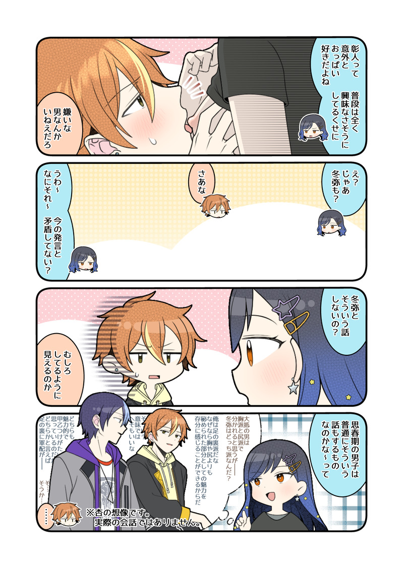 1ページ目4コマの杏が想像する彰人と冬弥の会話に誤字があり、その部分を修正しました。(別れる→分かれる)