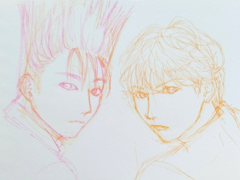 下描き。フリクションって消しても(暖めても)白い線?がうっすら残るんだ。。