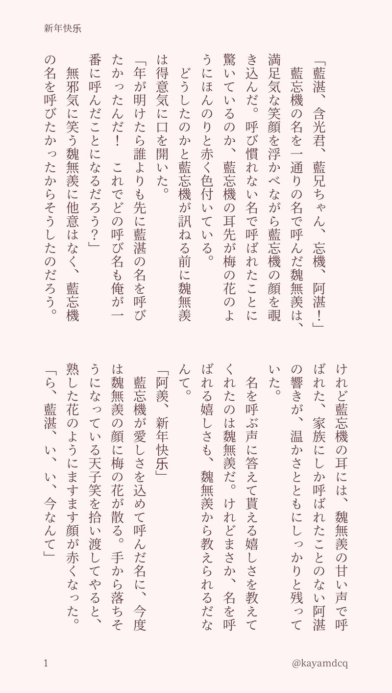 kayamdcq☆quiet followMOURNING新年を雲深不知処で迎える道侶未満知己以上なふたりの話 show all(+1 images) Tap to full screen (size:1854x3276).Repost is prohibited Let's send reactions! freqpopularsnackothersPayment processing Replies from the creator Follow creator you care about!☆quiet follow kayamdcqMENUJOREFESのお品書きです🔑イベント共通パスワード kayamdcqMOURNING両片思い知己が一緒に眠る話丑の刻になると決まって静かな足音が聞こえてくる。妖魔鬼怪の類かと思いきや、その気配は非常に穏やかで温かな気配を纏っていた。 4 kayamdcqMOURNING藍湛と再会した魏嬰が雲深不知処から立ち去ろうとする両片思い知己の話 2 kayamdcqMOURNING新年快乐新年を共に過ごす両片思い知己の話 4 kayamdcqMOURNING忘羨ワンドロお題『あなたの最高の忘羨』道侶となった忘羨の眠れない夜の話。寒さに震えて眠る夜も、孤独に押し潰されそうになる夜も、もう永遠に来ることはないから一一 4 kayamdcqMOURNING藍湛誕生日両片思い知己ではじめて過ごす一月二十三日の話 4 recommended works teethDONEGood boy 2 森乃杜DONEメリュzi〜ヌちゃん達ってヌヴィさんが連れてきたんですよね……反発とかあったかもしれないですよね……………………⚠️モブによるヌへの暴行(刺傷) あらかわDOODLEしずらぎ🔞このふたりが一番セックス激しそうpass:18↑? yes/no 2 siyuTRAINING三月と見つめ合ってちょっと微笑んでしまう一織くん模写 KoharuWatcherDOODLE eelec9DOODLEisagi猫 森野クマ3TRAINING今日の進歩460鬼の構図はある程度見えたけどまだ足りない __Sattva__DONE捧げ物 三月ユヤルDONE〖⚠R-18〗MiЯROR LOVERS【3】‐似てない双子の性事情‐ 12