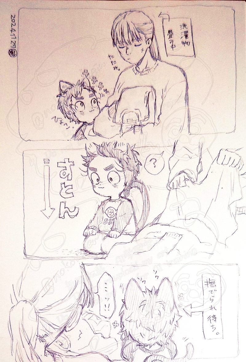とある日の様子。洗濯物畳んでるちょじくんに小平にゃ🐱の誘惑(?