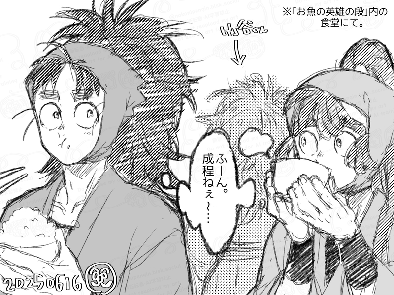 アニ🥚『お魚の英雄の段』内、食堂の別カメラアングルの様子(妄想)✍️🥸