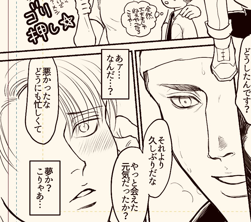 4056mizu☆quiet followPROGRESSよく昔から『書いてる途中で正気に戻るな』って明言があるのですが、正気に戻って見たら乙女が過ぎて背中を掻きむしりたくなりますね…😇 Tap to full screen (size:800x708).Repost is prohibited Let's send reactions! freqpopularsnackothersPayment processing Replies from the creator Follow creator you care about!☆quiet follow 4056mizuPROGRESS間に合うかわからない原稿…がんばってみています親リのその後まんがです頭空っぽなアホエロです親方はいいこなのでちゃんと待てができ…ま……パスワードはエルリ真ん中バースデー(4つの数字)です 2 4056mizuPROGRESS【原稿進捗です】ポイピクで頂くスタンプ、全てかわいくて嬉しいですありがとうございます☺✨中でもこのスタンプがすごく可愛くて、たぬりちゃんのエプロンにコソッと入れさせて頂いちゃいました。いつも本当にありがとうございます🙇 4056mizuPROGRESS【原稿進捗…というか…?】たぬりちゃんと🔞に関する気付きです 4056mizuPROGRESS【原稿進捗です】間に合わない気がしてきましたがギリギリまで死ぬ気で書いてみます低浮上になります 4056mizuPROGRESSそろそろ表紙をかかねばです…昔からお世話になってる印刷屋さんは誤字脱字もちょっと指がかすったような汚れとかも全ページ拡大チェックして直してくださるすごく丁寧で素晴らしい印刷屋さんなのですが(修正も毎回指摘されます・笑)〆切がよその印刷屋さんより5日くらい早いので💦今回は違う所にお世話になろうか悩んでいるところです。 4056mizuPROGRESS世界のアイドルたぬりちゃんの筈が……汗 recommended works AangMEMOthe whale and the shark!(*/ω\*)(sorry, I am not good at Japanese) 藍_白群DONE誕生日に感謝と愛を込めて あいだPAST以前メスイキをテーマにしたアンソロに参加寄稿した時のものですテーマがテーマなだけに直球エロマンガでしたパスワード18歳以上ですか yes/no 7 shirokuma_danINFO2021/10/10の壁博31の新刊、エルヴィンのお誕生日本のサンプルです。新兵リヴァイが初めてエルヴィンのお誕生日を祝うラブコメディです。こちらは本編「SKY BLUE EYES」の後日談ですが、こちら単体でもお読みになれます。とら:https://ec.toranoana.jp/joshi_r/ec/item/040030936172/ 9 成宮輝PASTエルリ絵の中でも思い入れのある一枚。リヴァイ→→→←エルヴィンに見えがちな関係でも、数年の間にはこんな一瞬があったのでは…。 いづきDOODLEリヴァイの寝顔を3時間以上見続けているエルヴィン いづきDOODLE何でも許されるリヴァイ※エルヴィンは喜んでます💦 比良坂DOODLE人類最強にめちゃくちゃにされるだんちょpass=18↑? 樹木サクサクDOODLE『プロローグ感想』続きバチキンって馬鹿なんだな~~って思ってプレイしてます。すごくストーリーの見方変わって面白い。 6