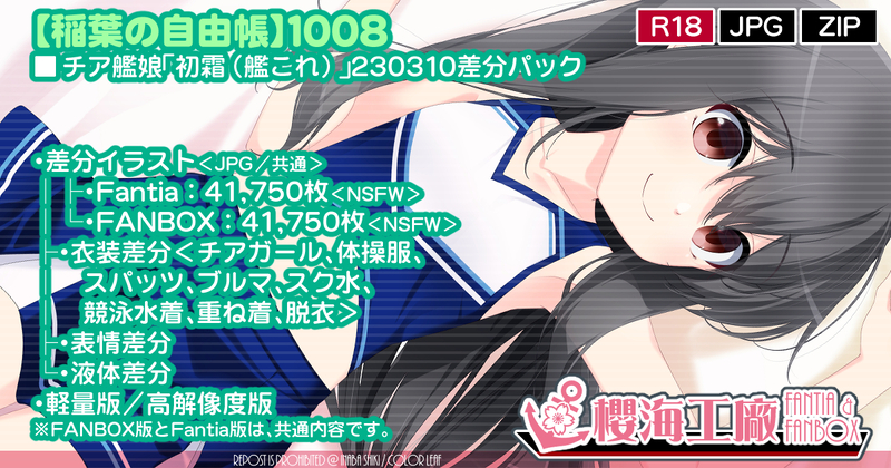 「【稲葉の自由帳1008】チア艦娘「初霜(艦これ)」230310差分パック」を公開