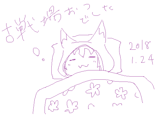 デフォルメし過ぎてわかりづらいけどなんか仮面とフード(マント)つけたまま寝てる絵になってしまいました