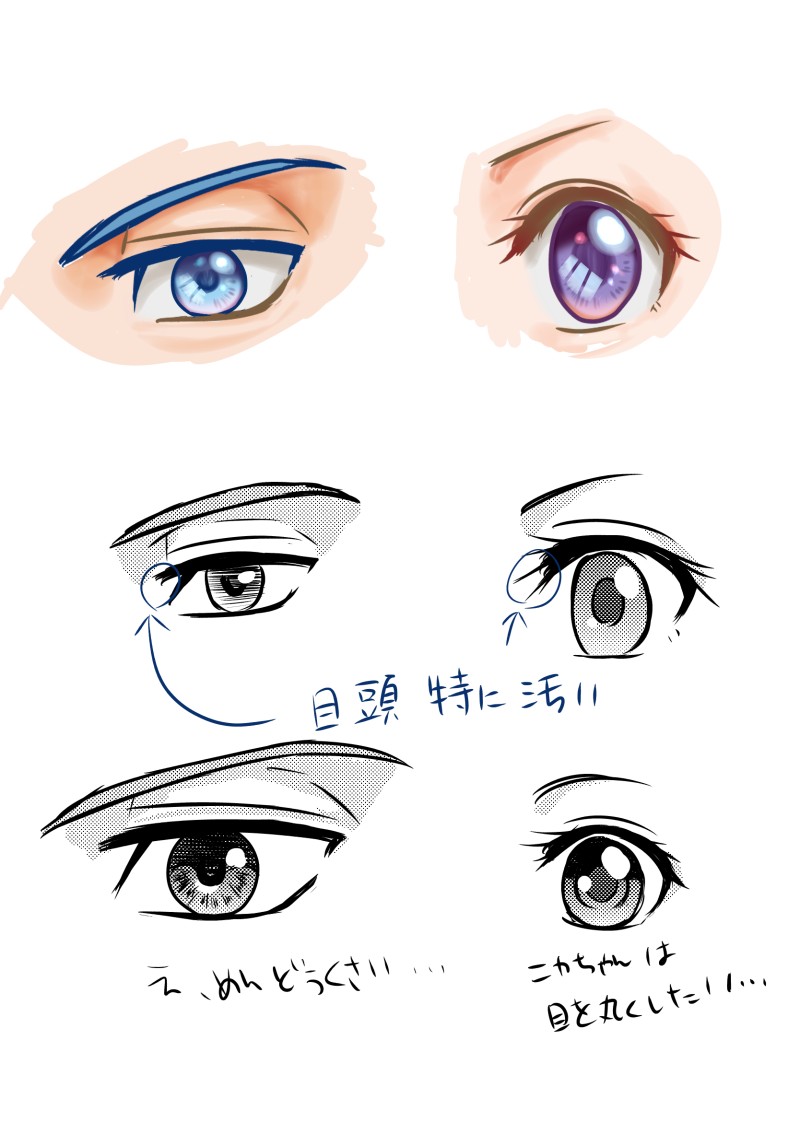 あまり凝り過ぎると描くのに時間も掛かるし、漫画に取り掛かろうって気持ちにならない(根っからの面倒臭がり)ので簡単かつ見栄えのする目ん玉の描き方、誰か教えて😓