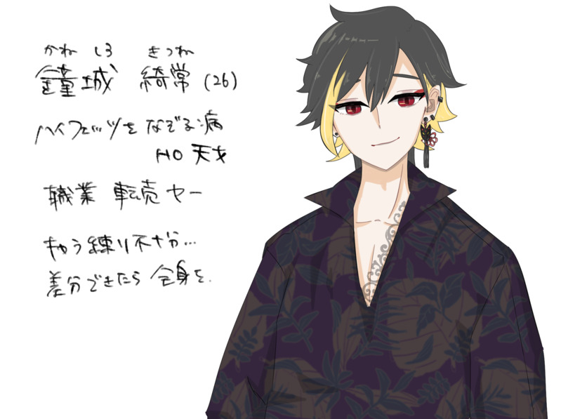 かが@はちの☆quiet followDOODLEハイフェッツHO天才転売ヤー、暫定 Tap to full screen (size:1942x1451).Repost is prohibited Let's send reactions! freqpopularsnackothersPayment processing Replies from the creator Follow creator you care about!☆quiet follow かが@はちのMEMOクリファンスタンプカード かが@はちのMEMO 3 かが@はちのPROGRESS無辜なきかいぶつたちのカオス ゲンミ×ふえた差分のメモy/n 2 かが@はちのDOODLE無辜なきかいぶつたちのカオス ゲンミ×本日の狼さんのメモところで切れ味いいやつない?y/n かが@はちのDOODLEしびゅらさんメモ かが@はちのPROGRESS recommended works りゅうしDOODLEらくがきN◎VAうちの子。弓長 大(レッガーの姿) ichichyyyDOODLE 5 気ままに奏汰DONE自分用のTRPG立ち絵探偵助手(になりたくて勝手に探偵の事務所に居座ってる)の男装女子 カラーリングがなんとなくイギリスっぽいけど純日本人少年っぽい見た目を目指してデザインしたけどまだまだ女子感が抜けないのが反省点でも最終的に気に入る感じになったから万事OK yome_firstDOODLE丹生谷 全。脇腹の傷痕っていいよね。 2 あさきとおるMAIKING北条結弦さん かなきみの02を見ている 先にカタシロを見てしまったからどうなったんだろうと思っていた nn_silverDONE庭師HO1チーフ立ち絵まとめ 3 theonoTRPGDOODLEルイとマトイ落書きまとめ 8 kome_ne_zu_miDOODLEさいころさま!たのしかった!高校三年生をあと少しだけ満喫したい。 fujimotuTRPGSPOILER川犬シナリオ『ホワイトブラッククリスマス』2022.12.21完走記念KPをした子とイメージカラーについて話して描き殴りました楽しかった…。背景カラーの意味蜜柑色:解放感、仲間意識の芽生え藍色:信念、孤独 2