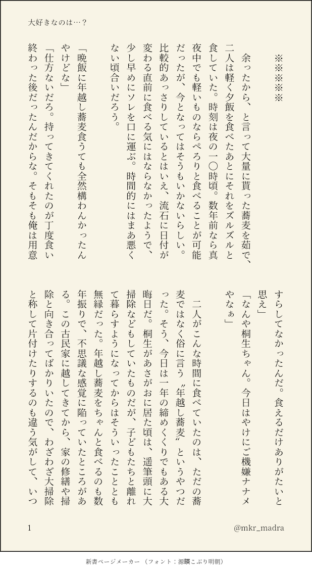 たかが2時間の話ですが、短くした結果、時間の経過に無理があるかな〜とも思ってますので、最後まで書ききって纏める時に空白の時を追加しますね(◡ ω ◡)