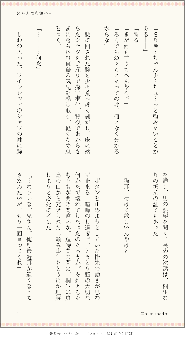猫耳着けて赤面してる桐生ちゃんが見たかったんや……()
