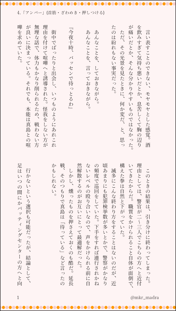 4.「アンバー」(首筋・ざわめき・押しつける)