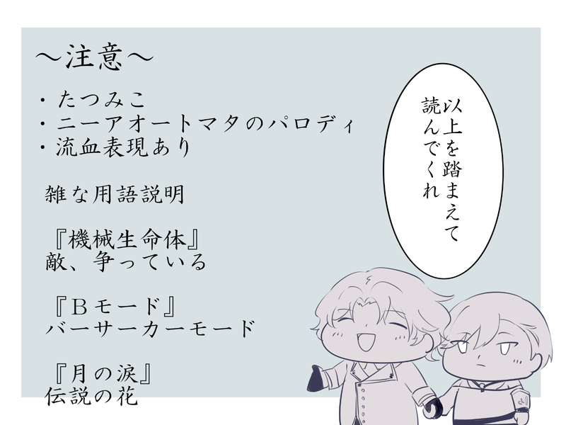 いちる☆quiet followDONEニーアオートマタの世界観でのたつみこ妄想背景の概念がまるでない漫画描き慣れてないので読みづらかったらすみません show all(+14 images) Tap to full screen (size:2400x1800).Repost is prohibited Let's send reactions! freqpopularsnackothersPayment processing Replies from the creator Follow creator you care about!☆quiet follow いちるDONE注意書きの内容を把握した上で読んでください🙏シリアスな内容なので可愛い2人はいません。そもそも、ミニ丈チャイナ服のみことくんが描きたかっただけのはずなのに、どうしてこうなったんですかね??? 5 いちるDONEニーアオートマタの世界観でのたつみこ妄想背景の概念がまるでない漫画描き慣れてないので読みづらかったらすみません 15 recommended works takenokoDOODLE25.02.27. sousakuakanekoDOODLE昨日フォロワーさんに付き合ってもらってた進捗 おすずDOODLE拝啓 モジャ DankaShuPROGRESSCock Cafe 8 umashiDOODLE色々マジで無限にありすぎて永遠の再掲作業なるもうせんでええか?ええで 13 ふうわDONEきさらおくん(テスト) kokko_lee_ODOODLE絵チャレオいず knee81613DONE2025/2 不二受けonly RaccoDOODLE表と裏いのマリに割り込む七ツ森とウザがる一紀という妄想 3