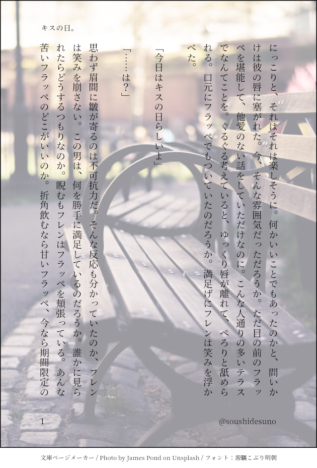soushidesuno!☆quiet followDONEフレン夢:キスの日キスする口実が欲しかったと供述しており…… show all(+1 images) Tap to full screen (size:630x928).Repost is prohibited Let's send reactions! freqpopularsnackothersPayment processing Replies from the creator Follow creator you care about!☆quiet follow soushidesuno!DONEフレン夢:キスの日キスする口実が欲しかったと供述しており…… 2 soushidesuno!DONEフレン夢:戯言タイトルのまんま。うかれたフレンが書きたかった。 soushidesuno!DONEフレン夢:素直になればいいのにレイズネタ。合流後の話。 4 soushidesuno!DONEフレン夢:空色の器レイズネタ。再会()したときの話。 soushidesuno!DONE🦁夢:また、夢を夢カプドロライのお題【夜道】で参加させて頂きました。 3 soushidesuno!DONE🦁夢:茜色の約束夢カプドロライ【夕暮れ】で参加させて頂きました。 2 recommended works ハローうさちゃんDONEドワ夢絵と夢漫画まとめ 13 もちごめDONE待て🐶 柚木(insheaht70)DONEフロ監♀の稚魚ちゃんとアズール&ジェイドの話。ほのぼ…の?#twst夢 #twstプラス 9 夏目紅葉CAN’T MAKEクズイド(デュ)の書きたかったやつしり切れとんぼ書きたいとこ2ショッピング「あれ?デュース?」「うわマジだお前何真面目ぶってんだよ!…よこの女誰?もしかしてコレ?」なんでもいいけど女で小指って(笑)古くね?『知り合い?』「あ、あぁ、その、昔の…」『あー、ヤンキー時代の』「言わないでくれ…」「お前の彼女?………30点かな」良かったな不良B、私が殺し屋だったら即殺してたぞお前人に点数つけるとは何事だ顔面永年赤点野郎。デュース見習えはなまる100点だぞ「やめろクルトン、俺の嫁を侮辱するな」「は、嫁?」へ〜?不良Bはクルトンって言うのか…お ぼ え た か ん な ? ?物理でオフられたくなけりゃとっとと失せな!コンポタに入ってそうな名前しやがって「物理はやめておけ監督生」『あれ、出てた?』「出てた」「さっきからその女なんも話さないけど無視してんの?」「…いや、ユウは声が出せないんだ」「ふーん…じゃあ15点だな」「てめっ!」『デュースやめて、デュースがやったら私も殺りたくなる』デュースは要領が悪い、エースや他の先輩達みたいに 1665 twst64546382DONE「好きなタイプ教えて・付き合ってないアズ監」アズ監♀(顔ある。しゃべる) #twstプラス #twst夢 もちごめDONEはからずも相手にとって一番『効く』攻撃をしていた もちごめDONE塗り指南動画を見て塗り直したもの もちごめDONE男性特攻呪文 3 twst64546382DONE「私の完璧彼氏①」ジェイ監♀(顔ある。しゃべる)付き合ってるジェ監漫画 #twstプラス #twst夢