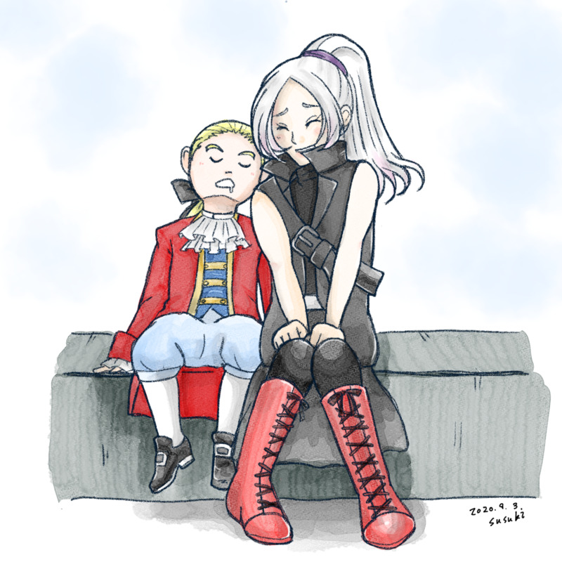 寄っかかって爆睡するくらいの子供だと思ってたら、いつの間にかこっちが寄っかかって支えられてたり。その対比が描いてみたかったのです。