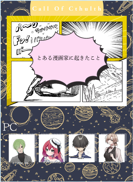 whale_rrrnTRPG☆quiet followDONE #7upサーバー 2025.03.03-04.CoC7th「とある漫画家に起きたこと」プレイヤー参加で遊んできました。オモロを狙った提案は棄却の出目をするくせに、殺意の提案は通す出目していた。ヤニカスは火の扱いに慣れていることがバレたな……。#るんろぐ Tap to full screen (size:532x725).Repost is prohibited Let's send reactions! freqpopularsnackothersPayment processing Replies from the creator Follow creator you care about!☆quiet follow whale_rrrnTRPGDONE #るんろぐ 2025.11.02.インセイン「蛍子のために《if》」GM ebさんPL/PC PC1:山田おふさん/竹内秀嗣 PC2:青海さん/本藤蛍 PC3:よこいさん/石堂蛍雪 PC4:しえるん/森美千代正史の時とは特技もアビリティも変えて、ifの世界を楽しんできました!協力型って分かっているとこんなに心穏やかなのか。ありがとうございました~! whale_rrrnTRPGDONE #るんろぐ 2025.10.22-28.#虚構侵蝕 「マイフレンド・エイリアン」GM しえるんPL/PC レイさん/隠岐麗 ファイさん/アキラ 4rie1さん/鷺嶋東司ルルブ掲載シナリオをキャンペーンとして遊ぶ会第3話!適正イデアがちょっと高いシナリオだから今までのようにはいかずとも、取得するフィクションパワーで噛み合うんだなぁ……という、初めての挙動を見ることができました。 whale_rrrnTRPGDONE #るんろぐ 2025.10.02-19.#虚構侵蝕 「Men in Buddy」GM しえるんPL/PC カレーさん/日原仁継やりたい!という要望にお応えして遊んできました~!何度か回していても初めての現象が起きるので面白いですね。ありがとうございました! whale_rrrnTRPGDONE #るんろぐ 2025.10.19.#虚構侵蝕 「Closed Cube」GM しえるんPL/PC レイさん/隠岐麗 ファイさん/アキラ 4rie1さん/鷺嶋東司ルルブ掲載シナリオをキャンペーンとして遊ぶ会第2話!前回のオフ会から1か月後ということでみなさんには閉じ込められてもらいました。フィクションパワーってこじつけ力だよね! whale_rrrnTRPGDONE #るんろぐ 2025.10.09-15.CoC7th「失われた栄光」KP タイゾーさんPL 歩瀬さん、鷺沼さん、しえるん、桜井さん3日間に渡って遊ばせていただきました。予想されてないであろう挙動を一生続けていた気がする。ありがとうございました! whale_rrrnTRPGDONE #るんろぐ 2025.10.03.CoC7th「浅草十二階」KP しえるんPL/PC 柳楽さん/唐松卯三郎 ほうじ茶さん/犬影吠 みのりさん/酒井穂積今年は縁あってたくさん浅草十二階回させてもらってます。危機察知能力の高いPLたちのおかげで(?)全員生還にてシナリオをクリアすることができました。素晴らしい! related works whale_rrrnTRPGDONE2024.12.04-25.インセイン「ヴィラ・アネッロ」GM はむさんPL/PCPC1 山田おふさん/キャロライン・ブラウPC2 歩瀬さん/フランセス・ダグラスPC3 しえるん/オリヴァー・ラミレス#るんろぐ お誘いいただいたインセイン!初ヴィクトリア!方々でヤバイとの噂は聞いてたけど、ずっと笑ってたな……。 whale_rrrnTRPGDONE2025.02.11.#虚構侵蝕 「魔法学校と長野の旅」GM しえるんPL/PC(左から) 歩瀬さん/雪星 山田おふさん/余語ことら カレーさん/綿雲円舞曲#るんろぐ ピリオド進行、タスク、陣営モードといったメカニクス採用してのセッションでした!NPCの出目走りすぎ!めっ!!! whale_rrrnTRPGDONE2024.12.02CoC7th「静かな店番」KP しえるんPL/PC ユーカビさん/猫宮歩美#るんろぐ 例によって特殊な遊び方をしました。 whale_rrrnTRPGDONE2025.01.12-13.#虚構侵蝕 「親友の“いく”セカイ」GM しえるんPL/PC 行原あきさん/小林晴哉インスト卓で遊んできました!優しい先生だったな~! #るんろぐ whale_rrrnTRPGDONE #るんろぐ 2025.05.23.インセイン「午前零時の鳥籠」GM はむさんPL/PCHO1 よこいさん/暗闇常HO2 謎猫さん/八木渉HO3 しえるん/山村心陽HO4 山田おふさん/四辻凌牙遊ばせてもらいました!持つべきものは暗闇さんだなぁ(HOともシナリオの内容とも関係ない話)ありがとうございました! whale_rrrnTRPGDONE #るんろぐ 2025.05.15-20.CoC7th「霧の都の怪物たち」KP まるめろさんPL しえるん、さなぎさん、とのさん(駒左から)遊ばせてもらいました!私が一生7版脳筋プレイしていた気がする懺悔! whale_rrrnTRPGDONE #るんろぐ 2025.10.09-15.CoC7th「失われた栄光」KP タイゾーさんPL 歩瀬さん、鷺沼さん、しえるん、桜井さん3日間に渡って遊ばせていただきました。予想されてないであろう挙動を一生続けていた気がする。ありがとうございました! whale_rrrnTRPGDONE2024.11.06-2025.01.07.CoC7th「膿み堕とし」KP 謎猫さんPL/PCHO壱 カレーさん/井藤無花果HO弐 しえるん/白露朱桃HO参 歩瀬さん/月森香苗HO伍 山田おふさん/徒野桐雪長丁場ありがとうございました!好き勝手させてもらいました。メンバーが優勝していればすなわち優勝!ありがとうございました!!!!! #るんろぐ whale_rrrnTRPGDONE #るんろぐ 2025.08.31.CoC7th「ペーパー・チェイス」KP しえるんPL/PC わるびすさん/シャーロット・マルティネス 最中さん/オースティン・ハイゼル昨晩キャラシ作成して、今日のお昼に半テキで遊びました~!ルールもハーヴェイくんというマスコット(マスコットではない)もシナリオの挿絵も気に入ってもらえたようで何よりです! recommended works uryu_fffPAST【