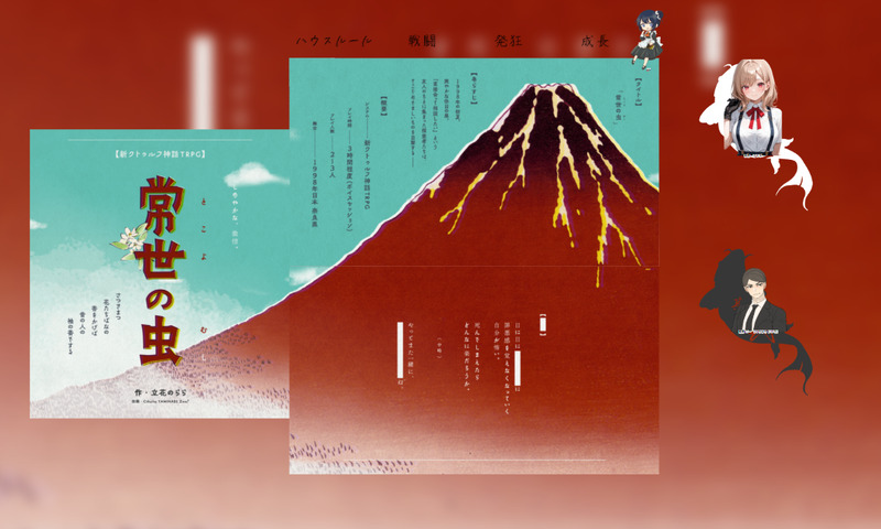 whale_rrrnTRPG☆quiet followDONE #るんろぐ 2025.05.18.CoC7th「常世の虫」#7upサーバー 最終日。KPしてきました!これが正真正銘最後の卓!1998年という特殊な指定ではありますが、楽しんでもらえたようで何よりです。ありがとうございました! Tap to full screen (size:1098x659).Repost is prohibited Let's send reactions! freqpopularsnackothersPayment processing Replies from the creator Follow creator you care about!☆quiet follow whale_rrrnTRPGDONE #るんろぐ 2025.10.09-15.CoC7th「失われた栄光」KP タイゾーさんPL 歩瀬さん、鷺沼さん、しえるん、桜井さん3日間に渡って遊ばせていただきました。予想されてないであろう挙動を一生続けていた気がする。ありがとうございました! whale_rrrnTRPGDONE #るんろぐ 2025.10.03.CoC7th「浅草十二階」KP しえるんPL/PC 柳楽さん/唐松卯三郎 ほうじ茶さん/犬影吠 みのりさん/酒井穂積今年は縁あってたくさん浅草十二階回させてもらってます。危機察知能力の高いPLたちのおかげで(?)全員生還にてシナリオをクリアすることができました。素晴らしい! whale_rrrnTRPGDONE #るんろぐ 2025.10.01.#虚構侵蝕 「自由になった記憶」GM しえるんPL/PC(HN) レイさん/隠岐麗(ヴェール) ファイさん/(アキラ) 4rie1さん/鷺嶋東司(サギバード)ルルブ掲載シナリオをキャンペーンとして遊ぶ会第1話!年齢層の厚いメンバーがオフ会に来てくれました。一生雑談してしまって申し訳ない。次回はもう少し先! whale_rrrnTRPGDONE #るんろぐ 2025.09.28.ネクロニカ キャンペーン「母の愛を」第4話「果てる愛」NC ラリーアットさんPL/PC(駒左から) しえるん/アリー まきなさん/イーヴィー kiuraさん/スロス第4話!最終話!ヤバイという噂は聞き及んでいたけど、こんなにヤバイとは思わなかったオブザイヤー!ネクロニカの原点にして頂点のヤバさ。もうこれでネクロニカで何があっても大丈夫! whale_rrrnTRPGDONE #るんろぐ 2025.09.23.フタリソウサ「山の死体」GM ebさんPL/PC 探偵 山田おふさん/小笠原るう 助手 しえるん/田中湊フタリソウサ自体は2回目だけど、大判になって初!初めての助手!という新鮮な体験ができました。助手の出目がずっと偉かった。何だったんだあれ。GMお手製のトレーラーもかわいいし、手厚くサポートして頂けてありがたい限りです。 2 whale_rrrnTRPGDONE #るんろぐ 2025.09.21.ネクロニカ キャンペーン「母の愛を」第3話「耐える愛」NC ラリーアットさんPL/PC(駒左から) しえるん/アリー まきなさん/イーヴィー kiuraさん/スロス第3話!ドールたちもかなり強くなってきていて、余裕をもった戦闘ができるようになってきましたね。前回の出目カス具合が嘘のように大成功出してくれる!極端か! related works whale_rrrnTRPGDONE #るんろぐ 2025.05.15-20.CoC7th「霧の都の怪物たち」KP まるめろさんPL しえるん、さなぎさん、とのさん(駒左から)遊ばせてもらいました!私が一生7版脳筋プレイしていた気がする懺悔! whale_rrrnTRPGDONE2024.11.06-2025.01.07.CoC7th「膿み堕とし」KP 謎猫さんPL/PCHO壱 カレーさん/井藤無花果HO弐 しえるん/白露朱桃HO参 歩瀬さん/月森香苗HO伍 山田おふさん/徒野桐雪長丁場ありがとうございました!好き勝手させてもらいました。メンバーが優勝していればすなわち優勝!ありがとうございました!!!!! #るんろぐ whale_rrrnTRPGDONE #るんろぐ 2025.10.09-15.CoC7th「失われた栄光」KP タイゾーさんPL 歩瀬さん、鷺沼さん、しえるん、桜井さん3日間に渡って遊ばせていただきました。予想されてないであろう挙動を一生続けていた気がする。ありがとうございました! whale_rrrnTRPGDONE2024.12.04-25.インセイン「ヴィラ・アネッロ」GM はむさんPL/PCPC1 山田おふさん/キャロライン・ブラウPC2 歩瀬さん/フランセス・ダグラスPC3 しえるん/オリヴァー・ラミレス#るんろぐ お誘いいただいたインセイン!初ヴィクトリア!方々でヤバイとの噂は聞いてたけど、ずっと笑ってたな……。 whale_rrrnTRPGDONE #るんろぐ 2025.08.31.CoC7th「ペーパー・チェイス」KP しえるんPL/PC わるびすさん/シャーロット・マルティネス 最中さん/オースティン・ハイゼル昨晩キャラシ作成して、今日のお昼に半テキで遊びました~!ルールもハーヴェイくんというマスコット(マスコットではない)もシナリオの挿絵も気に入ってもらえたようで何よりです! whale_rrrnTRPGDONE2024.12.02CoC7th「静かな店番」KP しえるんPL/PC ユーカビさん/猫宮歩美#るんろぐ 例によって特殊な遊び方をしました。 whale_rrrnTRPGDONE2025.02.11.#虚構侵蝕 「魔法学校と長野の旅」GM しえるんPL/PC(左から) 歩瀬さん/雪星 山田おふさん/余語ことら カレーさん/綿雲円舞曲#るんろぐ ピリオド進行、タスク、陣営モードといったメカニクス採用してのセッションでした!NPCの出目走りすぎ!めっ!!! whale_rrrnTRPGDONE2025.01.12-13.#虚構侵蝕 「親友の“いく”セカイ」GM しえるんPL/PC 行原あきさん/小林晴哉インスト卓で遊んできました!優しい先生だったな~! #るんろぐ whale_rrrnTRPGDONE #るんろぐ 2025.05.23.インセイン「午前零時の鳥籠」GM はむさんPL/PCHO1 よこいさん/暗闇常HO2 謎猫さん/八木渉HO3 しえるん/山村心陽HO4 山田おふさん/四辻凌牙遊ばせてもらいました!持つ