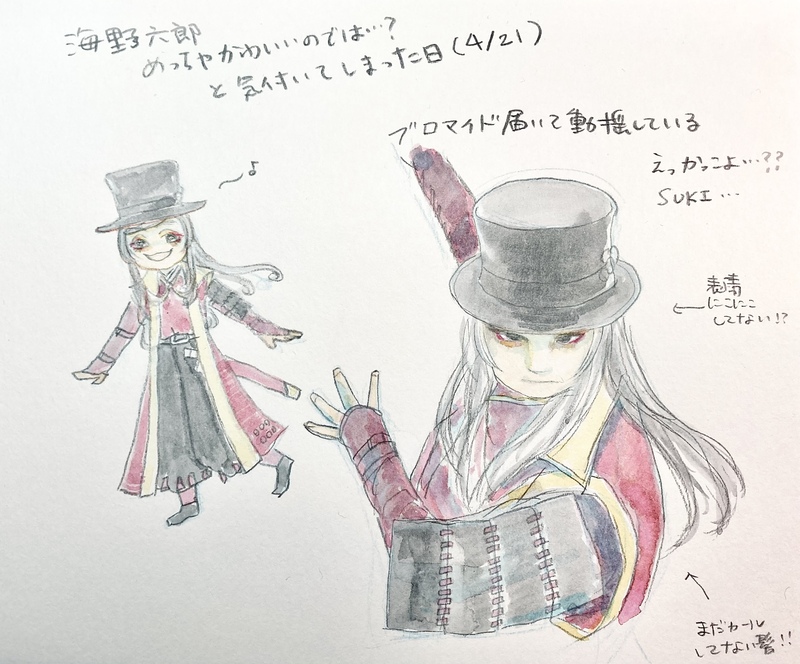 无伝で最初にあげるらくがきが何故か海野六郎になりました🤔いや真田十勇士たちのきゃっきゃしてる写真見てたら表情がめちゃくちゃかわいくて心臓を撃ち抜かれてしまって…かわいいな海野六郎…そして後から届いたブロマイドでダメ押しされた…かっこいいな海野六郎…