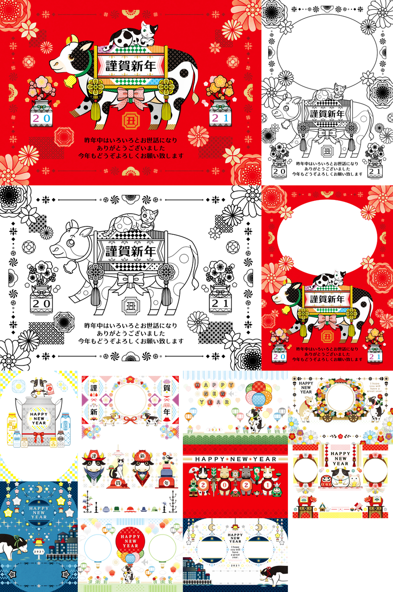 #2021年丑年年賀状デザイン