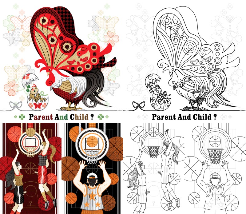 #鶏 #芋虫 #親子 #蝶 #バスケットボール #籠球 #スポーツ #ぬりえ #塗り絵 #線画