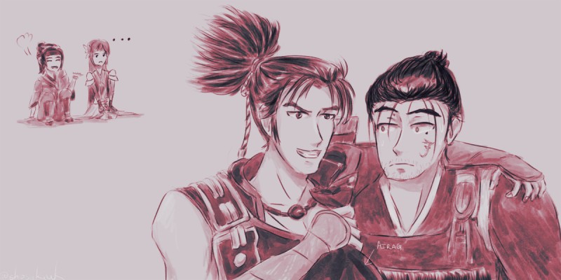 (SW!Nobunaga sharing a certain Mongolian booze with Jin, while Yuna and Lady Noh/Kicho talk about their husbandos lol)