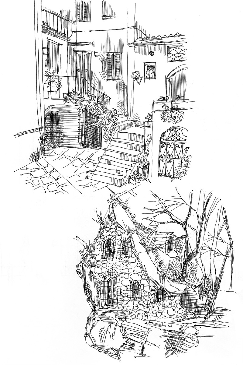 街角と、断崖にある家など