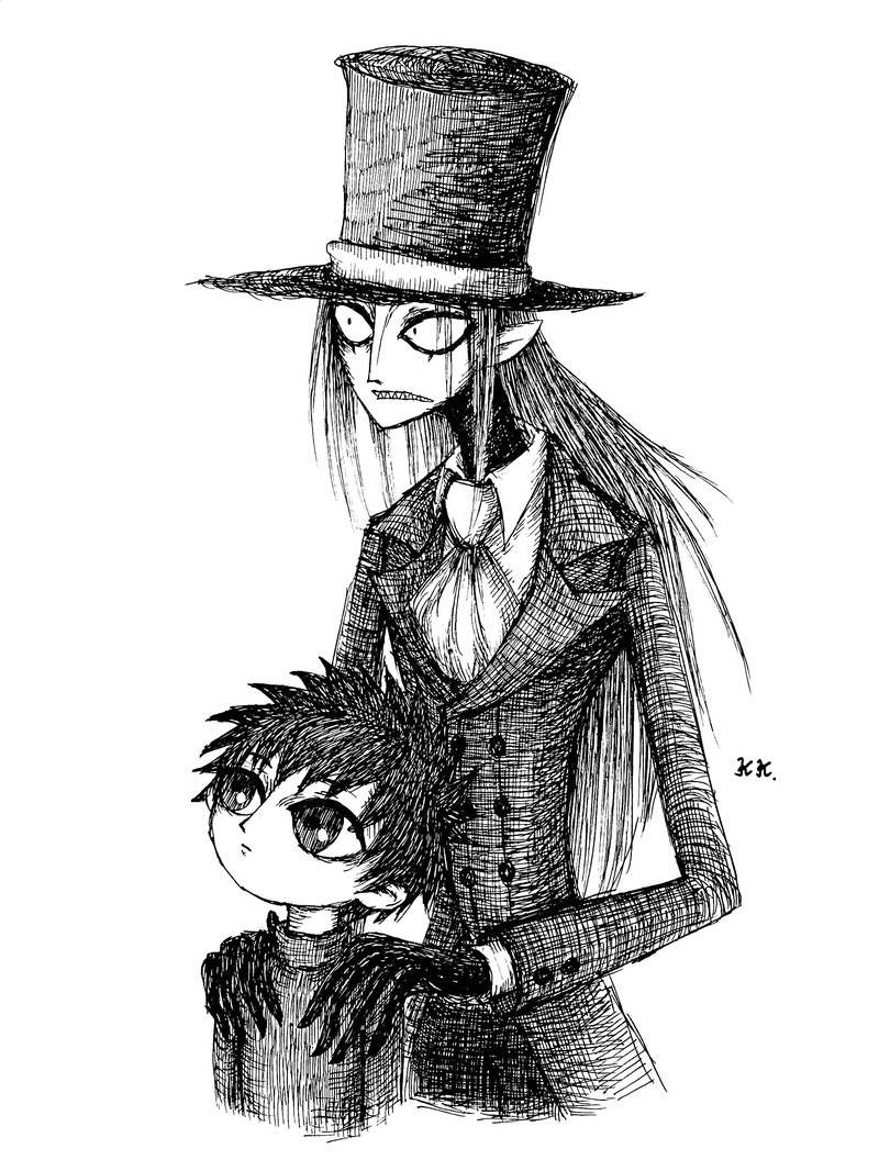 学生時代に描いていたキャラクターを、今のタッチで描いてみました🎩