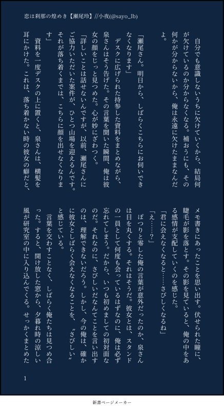 小夜(@sayo_lb)の書いたSSを収録しています。