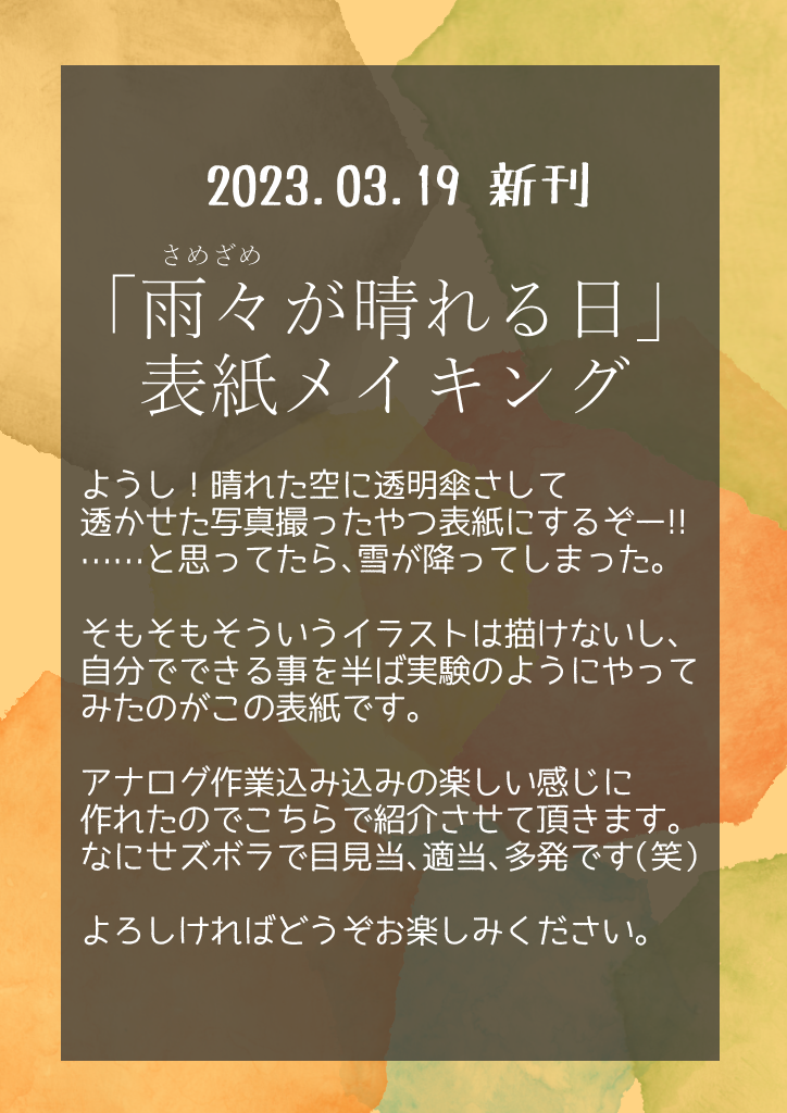 ぼっさ。☆quiet followDONE4/9抹消できないアイの爆弾Ⅱで展示していた春コミの新刊の表紙のメイキングをこちらに再掲載いたします。良かったらご覧ください(*´▽`*) #抹消NG爆弾2 #抹消NG爆弾2後夜祭 show all(+10 images) Tap to full screen (size:724x1024).Repost is prohibited Let's send reactions! freqpopularsnackothersPayment processing Replies from the creator Follow creator you care about!☆quiet follow ぼっさ。DONE4/9抹消できないアイの爆弾Ⅱで展示していた春コミの新刊の表紙のメイキングをこちらに再掲載いたします。良かったらご覧ください(*´▽`*) 11 related works unripeplum3DONE #抹消NG爆弾2相爆/全年齢/在学中/両片想いピアノ連弾する相爆 それだけのふんわりした話です水曜日さんの素敵な素敵なSS(https://twitter.com/kabos__udachi/status/1494566095768133633?s=46&t=qgTp9Q0AAt3fxc-YV1QWSw)からインスピを受けたものになります! 3269 ぼっさ。DONE4/9抹消できないアイの爆弾Ⅱで展示していた春コミの新刊の表紙のメイキングをこちらに再掲載いたします。良かったらご覧ください(*´▽`*) 11