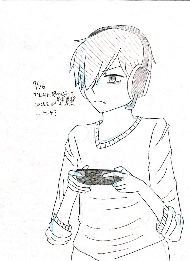 プレ4ではないけど何かしらのゲーム機を持ってゲームに熱中しているリースさんです。割と指が上手くいった✌('ω')✌気がする