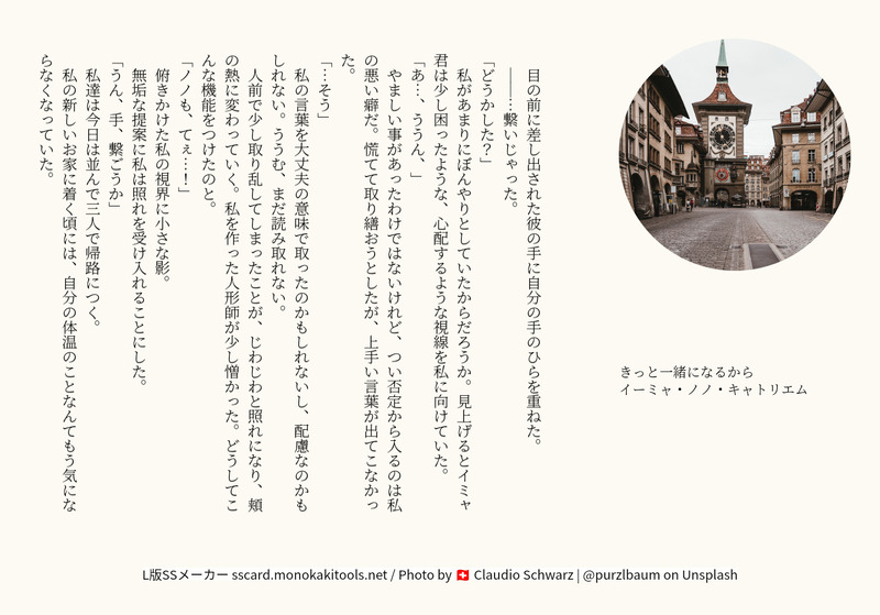 michiru1ji☆quiet followDONE【関係成立:主従】壱さん(@r_idys )宅のイミャ君と主従を組ませていただきました。ときに我が儘を、ときに支えになれる、家族のような存在です。 ##まぎどるキャトリエム Tap to full screen (size:1365x954).Repost is prohibited Let's send reactions! freqpopularsnackothersPayment processing Replies from the creator Follow creator you care about!☆quiet follow michiru1jiMOURNINGくるばちゃんへ 5510 michiru1jiMEMOリノダーリンランデヴー創作おしゃべりメモ michiru1jiMEMOヒューゴダーリンランデヴーうちのこゲーム風セリフ創作おしゃべりメモ 3 michiru1jiDONEダーリンランデヴーAg:47研修生 3 michiru1jiMOURNINGしゅん×ねる音琉ちゃんの誕生日 2 michiru1jiMOURNINGしゅん+ねる春 2 recommended works clarithromycinDOODLE viikaviDONECharacters from my omegaverse webtoon👉👈👀 “My precious diamond”Read here 🔗 m.tapas.io/series/My-Precious-…All links 🔗 viikavi.carrd.co/ 國友 汰木DONE8時間くらい掛けて描いた絵トレス素材って偉大ッ…目だけ描けるのがなぁ…うーん(._.) kasiwa_2goDOODLE🍰🌙のちびぐるみも欲しいぜ!と思って落書きしたんだけど何か物騒になった (盾と斧をイメージしたくて……) 2 ima_unko_siteeeDOODLEDD 尿 漏 8 花絵🩺MOURNINGシルバー🐱 musipan_32_2DOODLE無彩色 現行未通過× さっきの紅葉姉さんのふせ関連のラクガキ XiaoEhgeINFO𝐂𝐨𝐂「𝐌𝐮𝐫𝐝𝐞𝐫 𝐢𝐧𝐜.」𝐇𝐎𝟏 𝐋𝐨𝐥𝐢𝐭𝐚 | しの𝐇𝐎𝟐 𝐌𝐮𝐫𝐝𝐞𝐫| ミツ𝐁𝐮𝐥𝐥𝐞𝐭 - 𝟏 殺し屋と少女𝐁𝐮𝐥𝐥𝐞𝐭 - 𝟏.𝟓 外套とアイスクリーム𝐍𝐞𝐱𝐭 ▸ 𝐁𝐮𝐥𝐥𝐞𝐭 - 𝟐 火酒とテディベア りおんPAST熱き展覧会『クリスマス』(2024/12/25開催)にて展示したサンタ服のユウディアスです服に使った水色の布は元々ぬい本体を作る時に髪用の布として買ったのですが結局使わなかったものでした素敵な企画をありがとうございました 2