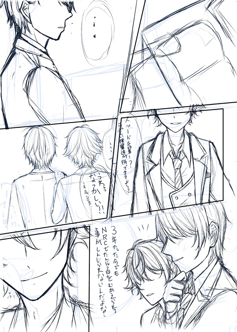 今更だけど、デュの誕生日が恐らくtwst君リリースされてから3回目だったから、3年生になったらって考えて、♠️も♥️も大人っぽくなって、お互いかけがえのない相棒感増してたらいいな(クソデカ感情)って、漫画が描きたかったんだけど、1ヶ月過ぎてしまったから完成を諦めたやつ。万が一、気力が湧いたら完成させるかもしれない。