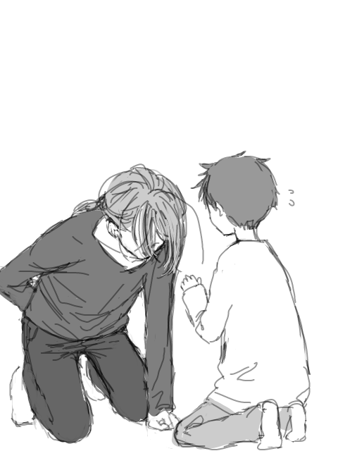 一緒に暮らし始めたときに一所懸命によつくんのお話聞こうと腰をかがめた態勢を頻繁に行い、ついに腰を痛めた先生