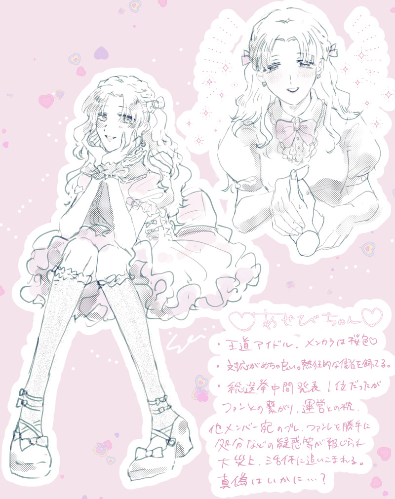 es66x0☆quiet followDOODLEお題箱より「アイドル活動をしている四姫」あせびちゃん編あせびちゃんは王道路線の清純派アイドルで売り出したい!炎上で活休もありだなと思ったけど多分何らかの力でもみ消される。2枚目は描きながら聴いてた曲!全部可愛いのであせびちゃんに歌ってほしい〜!田村ゆかり姫の曲全部合うと思う show all(+1 images) Tap to full screen (size:2508x3171).Repost is prohibited Let's send reactions! freqpopularsnackothersPayment processing Replies from the creator Follow creator you care about!☆quiet follow es66x0DONE⚠️現パロです千早+明留自分のツイートのネタ、やっぱ自分で描くしかないなって……あとお題箱にも明留と千早をと頂いたので背中を押してもらいました🙇♀️ありがとうございました💗漫画初心者なので大目に見てください 7 es66x0DOODLEお題箱より「アイドル活動をしている四姫」白珠編地下ドルだったら基本お触り禁止だけど積んで周回してたら絆されてリアコ距離チェキも気まぐれで撮ってくれるようになりそう。王道アイドルなら表向きはそんなにガツガツしてないけどファン限定ブログとかで熱い思い吐露してて…オタクは金を落とすのであった でも突然結婚&引退発表する 2 es66x0MOURNINGひめ〜 没にしたやつ es66x0DOODLE翠寛院士……🤔 es66x0DOODLEお題箱より「アイドル活動をしている四姫」浜木綿、真赭の薄編二人とも韓国アイドルのイメージ。スタイリッシュな衣装着てほしい…… セット売りしてるわけではないけどとある時から仲良くなり良く2人でいるところ目撃される。2,3枚目は描きながら聞いてた曲。2人イメージのアイドル曲難しくて夏、秋っぽかったり単に曲調が雰囲気に合いそうだったりするものが多くなった。 3 es66x0DOODLE残業マンなのでらくがきです立体物のグッズ、ほしい recommended works nullDOODLE八咫烏シリーズ主のふたりのことしか考えられない かなこ(Kanako)DOODLE奈月彦殿下まだ漫画版がなかったころ、こんな感じのひとかなあと描いてみたお絵かき。 かなこ(Kanako)DOODLE北家の白珠ちゃん かなこ(Kanako)DOODLE東家のあせびちゃん かなこ(Kanako)DOODLEあせびちゃんパソコンの筆記ソフトで描いてみたのでマーカーが数色しかなくて香色と肌色は出せず…笑 crosslamina_壱DOODLE主のときの雪哉 かなこ(Kanako)DOODLE垂氷の雪哉くんスケッチ しののめDOODLE北家の白珠。つんつんしていて可愛い。 しののめDOODLEミニキャラ白珠。 2