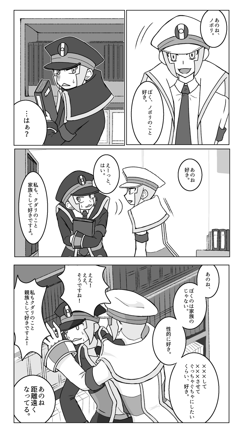 haruharuccho_pk☆quiet followDONE5/13〜5/14開催の『恋に下り愛に上る vol.2』の展示漫画です。S▽▲、全年齢、1P。まだ成立する前で、片割れからそんな感情を向けられるとは露にも思っていなかった▲さんのお話です。 #恋下愛上 loveUnderLoveOn #▽▲ #下上 downUp Tap to full screen (size:1440x2560).Repost is prohibited Let's send reactions! freqpopularsnackothersPayment processing Replies from the creator Follow creator you care about!☆quiet follow haruharuccho_pkDOODLEAS▲▲。少しだけいかがわしい表現あるのでワンクッション。えってぃなものではないです haruharuccho_pkDONE右のM▽くん。いかがわしいのでワンクッション haruharuccho_pkDONEA▽▲。脱帽捏造。絶対◯◯させてくれない兄さん haruharuccho_pkDONE2025/5/3(土)~5/5(月)開催の『邂逅モノクローム』にて展示していたG▽▲🔞風味1P漫画です haruharuccho_pkDONE2025/3/7(金)~3/9(日)開催の『トランスポケーション!!』にて展示していたアケ▽×G▲の🔞漫画(1P)です haruharuccho_pkDONEAS▽▽の節分。いかがわしいところが一部あるのでワンクッションですが、ギャグです related works haruharuccho_pkDONE5/13〜5/14開催の『恋に下り愛に上る vol.2』の展示漫画です。S▽▲、全年齢、1P。まだ成立する前で、片割れからそんな感情を向けられるとは露にも思っていなかった▲さんのお話です。 recommended works nap_p6DOODLE18歳以上ですか?(y/n) cynicwsDOODLE程光ちゅーの続き。具体的ではないけど汚い方の下ネタ注意。 3 4696_seijiDONEギアステーションアベニュー2での新作展示の漫画ですアナログ原稿の無声漫画で味気無いかもしれませんが読んで頂けましたら嬉しいです後日pixivにも載せる予定です 5 Rin67595350DONE74 ▽▲ ▽モブ表現あり▲リスカ アムカ何でもオッケーって人だけ Rin67595350DONE80 ▽▲ ▽モブ表現あり▲リスカ アムカ何でもオッケーって人だけ Rin67595350DONE82 ▽▲ ▽モブ表現あり▲リスカ アムカ何でもオッケーって人だけ Rin67595350DONE85 ▽▲ ▽モブ表現あり▲リスカ アムカ何でもオッケーって人だけ Rin67595350DONE86 ▽▲ ▽モブ表現あり▲リスカ アムカ何でもオッケーって人だけ Rin67595350DONE120 ▽▲▲リスカ アムカ何でもオッケーって人だけ