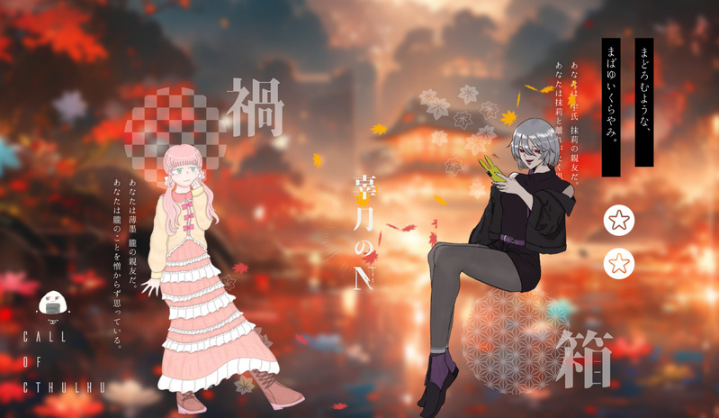 こ め☆quiet followINFOCoC「辜月のN」HO禍:宇氏 抹莉/うえさんHO箱:薄墨 朧/nagataさんKP:こめ両生還にてシナリオクリア可愛いJD2人組のこげぬでした!たくさん考えてくださって嬉しかったです!これからもその手を取って、生きていこうね…!2025.11.22 #クトゥルフ神話TRPG cthulhuMythosTrpg #卓報告 tabletopReport Tap to full screen (size:2300x1335).Repost is prohibited Let's send reactions! freqpopularsnackothersPayment processing Replies from the creator Follow creator you care about!☆quiet follow こ めINFOCoC「辜月のN」HO禍:宇氏 抹莉/うえさんHO箱:薄墨 朧/nagataさんKP:こめ両生還にてシナリオクリア可愛いJD2人組のこげぬでした!たくさん考えてくださって嬉しかったです!これからもその手を取って、生きていこうね…!2025.11.22 こ めINFOCoC「K県警K課 第4話 捻じれた家」KP:むとうさんHO1:八百 長/もとはじさんHO2:召瀬 桃肉/ちゃんろんさんHO3:金盗 鈴錫/こめHO4:能梨 先/なっちゃんエンドAこいつら生きる力が強い!!!2025.11.19~20 こ めINFOCoC「心臓がちょっとはやく動くだけ」KPC/KP:天羽 詩乃/眠吉さんPC/PL:亜月 愁/こめエンド1にてシナリオクリア「俺の人生に詩乃さんがこれからも居てくれるなら、俺はそれが幸せです」カラカラになりました。ありがとうございました。2025.11.15 こ めINFOCoC「K県警K課 第3話 笑う氷塊」KP:むとうさんHO1:八百 長/もとはじさんHO2:召瀬 桃肉/ちゃんろんさんHO3:金盗 鈴錫/こめHO4:能梨 先/なっちゃんエンドAなんですかこれは?????????2025.11.14~15 こ めINFOCoC「K県警K課 第2話 遠い橋」KP:むとうさんHO1:八百 長/もとはじさんHO2:召瀬 桃肉/ちゃんろんさんHO3:金盗 鈴錫/こめHO4:能梨 先/なっちゃんエンドAPC「やってらんねえ!!」PL「こいつらおもしれ~ww」2025.11.7~14 こ めINFOCoC「100万回目のハッピーバースデー」KPC/KP:霧島 巴/こめPC/PL:芥子川 仁/もとはじさんエンドC両生還にてシナリオクリア芥子川さんのお誕生日を祝わせてもらいました!𝓗𝓪𝓹𝓹𝔂 𝓑𝓲𝓻𝓽𝓱𝓭𝓪𝔂…回しながら泣けてしまった…この2人らしくてとても楽しかったです!「たくさん…?そうですか…?」2025.11.9~11.10 related works 五十嵐PROGRESS みろくDOODLE我が家の探索者。ファッションデザイナーの白雪逸姫くん。クトゥルフの某シナリオにて触ってはいけないものに2度も触れ、冒涜的な幻を何度も見ることになり発狂。探索者ロストにはならなかったが、半永久的に左足が動かせなくなった。【ナイフの幻影】 2 五十嵐PROGRESS 五十嵐PROGRESS 八月 真也ValentineCoC探索者男子でバレンタイン 10 みろくDOODLE新しいクトゥルフ探索者新米ぽんこつ大食い鑑識くん みろくPAST1年前に描いた探索者イラストのまとめ 12 八月 真也DOODLE探索者落書き集 15 10ma10_2sSPOILER共感覚 現行未通過🆖pass→❲y/n❳ recommended works うるこはんDONE描き初め。CoC探索者サナさん〜〜顔怖い人の笑顔難しい… 鈴おやつ。DOODLE だけんSPOILER⚠️ステガノグラフィ 現行/未通過❌表情差分と絵 2 だけんDOODLE🔞👁🗨⚠️尊厳crash!SAN値ゼリー 現行/未通過❌一人目のスクショ(隠し有り/無し差分)2枚と、おまけ1枚(👁🗨擬似スカトロ)二人目のスクショ(隠し有り/無し差分)2枚と、おまけ1枚 6 せとCoCSPOILERプルガトリウムの夜げんみ❌これちょうど良くてビックリしたえ?????????まさかこうなるとは思ってなくて東京喰種か????になったHO1酒葉さんがマルボロ吸うシーンスッキ!! 2 やなさんDONEクトゥルフ神話TRPG探索者■夏樹ラン(ニックネーム:ロケラン)高校1年生 初出【ジャンクパーツ・フルセッション!】HO3 あなたには夢がある 継続【村ホラーRTA】 継続【HERBARIUM GARDEN】■利用素材(敬称略) Picrew |ひよこ男子メーカー【ダムるし】 いらすとや |ゴーグルのイラスト ニコニ・コモンズ |安全ヘルメット【フリー素材あそび】 12 colacolaDOODLE触手x忌炎 2 cl_rown_katanaREHABILI蜜蟷のつもりで…刀語ハマった時の激推しはいまだに手癖で描けるの笑うwwもう一枚に続ける為のアレコレ…オフでは蜜蜂くんには蟷螂さんのこと、兄さん呼びさせたいとずっと思って⚪︎⚪︎年wwあと蟷螂さん蜜蜂君相手に騎⚪︎位してきそう。そこから腰掴まれればいいと思いませんか?↓小文字で同意してくださる方どーぞ🌟えちえち頑張ったけど、まあ見えてないのでワンクッションで。。 screamwandererPROGRESS