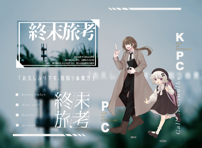 こ め☆quiet followINFOCoC「終末旅考」PC/PL:校倉 史/蒼ちゃんKPC/KP:叶 愛里亜/こめ静テロ継続で回させていただきました!史くんらしい考えや静テロ継続ならではをたくさん浴びさせてもらって嬉しいです…ほくほく「史らしい考えだね」2025.12.11 #クトゥルフ神話TRPG cthulhuMythosTrpg #卓報告 tabletopReport Tap to full screen (size:3113x2288).Repost is prohibited Let's send reactions! freqpopularsnackothersPayment processing Replies from the creator Follow creator you care about!☆quiet follow こ めINFOCoC「終末旅考」PC/PL:校倉 史/蒼ちゃんKPC/KP:叶 愛里亜/こめ静テロ継続で回させていただきました!史くんらしい考えや静テロ継続ならではをたくさん浴びさせてもらって嬉しいです…ほくほく「史らしい考えだね」2025.12.11 こ めINFOCoC「静なるテロリスタ」KP:しおりさんPC/PLHO童子:叶 愛里亜/こめHO篤学者:校倉 史/蒼ちゃんHO美術家:呉零 泥椋/くまちゃんHO異邦人:Temilami/ぼくちゃん全生還にてシナリオクリアみんなよく頑張った!!!最高の仲間たちでした ありがとう!静テロっていいな!「ミラノの面白いところ案内してね!」2025.12.6~12.7 こ めINFOCoC「K県警K課 最終話 ???」KP:むとうさんHO1:八百 長/もとはじさんHO2:召瀬 桃肉/ちゃんろんさんHO3:金盗 鈴錫/こめHO4:能梨 先/なっちゃんエンドA無事に豚箱にぶち込まれました💛長い期間ありがとうございました!2025.11.26~12.3 こ めINFOCoC「NapFrappe」KP:えりちゃんHO MOON:No.0708/みもぎさんHO STAR:スピカ/こめエンド3 【Star】ロスト、【Moon】生還「…約束、守れなくてすまない ──」これがNapfrappe…!!!世界観やストーリー、描写共にすごく綺麗だしすごく楽しかったです!!!悔いはない…!!2025.11.16~11.29 こ めINFOCoC「辜月のN」HO禍:宇氏 抹莉/うえさんHO箱:薄墨 朧/nagataさんKP:こめ両生還にてシナリオクリア可愛いJD2人組のこげぬでした!たくさん考えてくださって嬉しかったです!これからもその手を取って、生きていこうね…!2025.11.22 こ めINFOCoC「K県警K課 第4話 捻じれた家」KP:むとうさんHO1:八百 長/もとはじさんHO2:召瀬 桃肉/ちゃんろんさんHO3:金盗 鈴錫/こめHO4:能梨 先/なっちゃんエンドAこいつら生きる力が強い!!!2025.11.19~20 related works ヤマシタSPOILERCoC『ここ掘れ!メルゴー!穴掘りカレッジ!』制作:犬点書店 様KP: ヤマシタHO1:Arthur Edward Wellesley /なつこHO2: Lucian Azure Beckett/るもちゃんHO3: Albert Tim Illustrious/まげる先輩HO4: Lucas Illustrious/ろびん先輩プリンセスハウスよ ムキムキなれ 2525hinoesenINFO❚ ᴄᴏᴄ ᴛʀᴘɢ✦ 星が落ちた日|𝐄𝐍𝐃-𝟏𝐊𝐏 - ひのえ𝐏𝐋▸ 𝐇𝐎𝟏 - 飌雷 嗄綑様▸ 𝐇𝐎𝟐 - 日向様 Zun_KomameINFO『REGlCiDE』作/犬点書店 様KP:BisqueさんPL:三井圭さん(セレスティン・ムーガイ) ベジタリあんどうさん(ルイス・スミス) こまめ(ガラハッド・ファーノン) 希崎ひねもさん(パーシヴァル・ファーノン)生還にて終了です!よかった~~~!!!次はオブブブ!!!!💪💪⚠️ネタバレ落書きアリ⚠️PW:ok 8 text_7DOODLE2025.07.09「黒いガレー船」PL まいまいさん、えびさん、ももしゃさん、獅子飼いさん温水 海斗、温水海里、紺野 秋永、葉山 湊 ヤマシタSPOILERCoC『REGICiDE』制作:犬点書店 様KP: ヤマシタHO1:Arthur Edward Wellesley /なつこHO2: Lucian Azure Beckett/るもちゃんHO3: Albert Tim Illustrious/まげる先輩HO4: Lucas Illustrious/ろびん先輩END-A 全生還プリンセスハウスよ 永劫なれ かれいINFOCoc【ゆれるフリルにくちづけて】黒柄 エチル様・作PC/PL:カエデ/ちゃろKPC/KP:赤城 駿河/かれいEND.B にてシナリオエンド 2 ヤマシタSPOILERCoC『OBLIVION』制作:犬点書店 様KP: ヤマシタHO1:Arthur Edward Wellesley /なつこHO2: Lucian Azure Beckett/るもちゃんHO3: Albert Tim Illustrious/まげる先輩HO4: Lucas Illustrious/ろびん先輩END-Ω 全生還プリンセスカレッジよ 無窮なれ ZUTTOGAMESDOODLECoC「Gin・Craze」 ヤマシタSPOILERCoC『sleep-walker』制作:蛙屋 様KPレスPC:Theodore・UttersonエンドB→D(処理ミスを発見したので)出目がカス! 睡眠の質もカス!