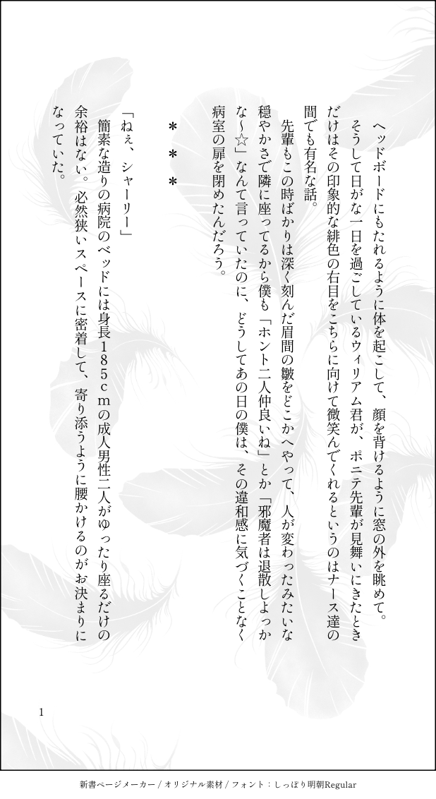 snowblossom69☆quiet followMOURNING病院シリーズ(心中) show all(+4 images) Tap to full screen (size:618x1132).Repost is prohibited Let's send reactions! freqpopularsnackothersPayment processing Replies from the creator Follow creator you care about!☆quiet follow snowblossom69DONE雨と猫の日のSW 3 snowblossom69DOODLEのるウィとのるシャを描いてみた💙❤️ snowblossom69DOODLE8/2は🐰の日!(なお安定の遅刻🙃)※ポーズはトレス用素体をお借りしました snowblossom69PAST某様のご本から派生して書かせていただいた、発狂表・偏執狂のお話(再掲) 元ネタがWSなのでWSの想定だけどどっちでも読める(というかカプ要素らしいものはない) 救いもない← 4 snowblossom69PAST横恋慕のビリー君(再掲・だいがくせパロSW) イメージソングはLACC○ T○WERの藍染。 4 snowblossom69DOODLEキスの日SW(遅刻)、side.シャ ※蔵出し 4 recommended works さつきぶたDONE事後にトロ顔でキスを強請りにくる🐦さん可愛いよね…(英語で話しかけてくるところは私の好み)⚠️夢主の顔少し出てます。🌸絵文字=夢主の名前表記です。 ミツヲMOURNING現パロ竹虎様ボツ勿体無いの精神 205YUZURU8888DOODLE 2 ichikawa santokiDOODLE玩猫奶。密码是男主播生日。 2 masamune58DOODLE待たされジェシカさん 2 masamune58DOODLE薄々気づいていたけど宿難様好きだ。圧倒的強者が自分より弱い存在を傍に置いているのが大好き侍である。 syunmin_DDOODLEぽめろん dear angel 現未×動画で使った絵 45 shou0526MOURNING【Cosplay】-Baby's breath -原神 フリーナPhoto:弥生さん 4 eleson_daisukiDOODLE紫