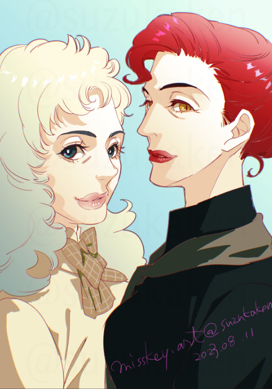 公式で「二人が女性体の時代の話のスプリクト案があった」とかいうのを見て耐えきれずに描いた。女体化だいすき。二枚目はJKぽいやつを手癖で。