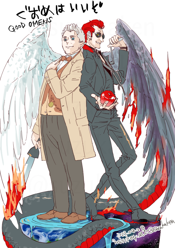 互いに敵陣営の天使と悪魔、っていうオタクが好きな要素しかないのに、現状では頼れるのが二人だけしかいないっていう共犯かつ共依存の状況、かつ無性という設定なので見た目的には壮年の男性同士なのに男性体女性体でやりたいほうだい𝑩𝑰𝑮 𝑳𝑶𝑽𝑬できるっていう万能作品って無敵かよグオメ