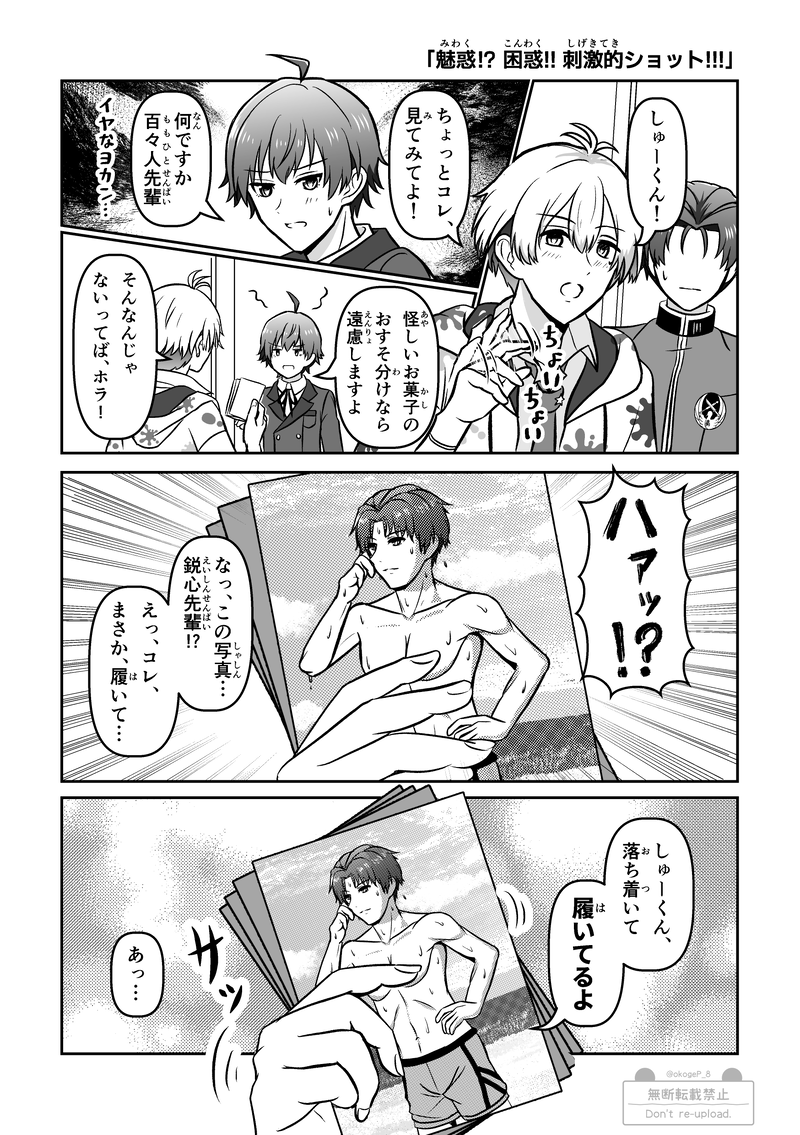 okogeP_8☆quiet followDONE鋭心先輩の開放的な姿を見て複雑な感情が生まれてしまうクラファたちの漫画を描きました。ピクコレの、レアなアレが元ネタな関係で肌色やや多めかつ個人の感想強めな回となります。実際、あの画が何故ご用意されたのか、ユニメンがどう感じたのかは謎なので…何もかもが、妄想です… #SideM show all(+2 images) Tap to full screen (size:1748x2480).Repost is prohibited Let's send reactions! freqpopularsnackothersPayment processing Replies from the creator Follow creator you care about!☆quiet follow okogeP_8DONE某都市伝説を解体するアレのパロディシリーズ、C.FIRSTセンターの天峰 秀が活躍するストーリーです。元ネタの大きなネタバレは無い&元ネタが分からなくても大丈夫なように作っていますが、少しでも気になる方は ご注意くださいませ。一応の全体ストーリーは考えているので、少しずつ追加していく感じでいく予定です。(最終更新:2015/10/19 NoriNoriTalk編を追加) 28 okogeP_8DONE(漫画)パバステや新刊のおまけペーパーに付けていた漫画です。振り付けのポーズの一部が「番組のお便りの宛先はコチラ!」的なやつに見えなくもないよな…って発想だけで描きました。 okogeP_8MENU【8/30 パバステ現地4th】お品書き8/30 Passion! VIRTU@L STAGE!現地4th in多摩【や28】焼きたて おこげ本舗パバステ4thのお品書きです。新刊の他、特典ポストカードやグッズなども用意しております。良ければお立ち寄りくださると嬉しいです!新刊のサンプルはこちら↓https://poipiku.com/5392936/12115233.html 2 okogeP_8INFO【パバステ現地4th】新刊サンプル『サイコーひとくちアラカルト』全年齢/A5/本文70p/CPなし/800円(会場頒布価格)8/30 Passion! VIRTU@L STAGE!現地4th in多摩にて頒布予定。315プロオールスター(49人+α)のひとくちサイズ漫画の詰め合わせ本です。49人それぞれが主役の1P漫画の他描きおろしや未公開作品なども多数収録。※後日通販予定 8 okogeP_8DOODLEクラファ最新ストーリーで、例の質問に対する反応が三者三様で良かったなーって思った勢いで描いたやつです。それはそれとして、Pは何であんなにハッチャケてたんだよ… 2 okogeP_8DONE鋭心先輩が応援団衣装のアレについてWhyな疑問を抱くお話を描きました。H◯Vコラボネタ。あのデザイン可愛いくて大好きなんですが、本人的には「???」な状態になってそうだなと思ったので… 3 related works ぽーらDOODLEねむる翼mini ねねこDOODLE #SideMせいじちゅん…… つくね子PAST ご飯ヶ竹吾郎DONEpkmnのエリトレの服 ユキニョDONEクリスマス前半戦お疲れ様でした~ NRGayaDOODLEコキュートス🤔 ご飯ヶ竹吾郎DONEカラーパレットでリクいただいたもの うしおDOODLE締まったタイを緩める~ のフレーズが頭から離れなくなったので描きました ユキニョDONEクリスマス前半戦お疲れ様でした~ recommended works ご飯ヶ竹吾郎DONE(#アイドルマスターSideM #SideM )まいたくん 18.9.16過去ログは以上 ぽーらDOODLEみにつめ ぽーらDONE寝る前に絵本を読んでくれる翼お兄ちゃん 0komesuke0DOODLE 3 KitaDOODLEあなろぐらくがきつめですカラーシャー芯でわくわくしている絵をまとめました 8 ゆめこDOODLEプロデューサーとちゅん速一魂 2 mckPASTMマスlog/最後のは過去の名刺一覧です!元絵行方不明なので見つけたらそのうち‥ 20 ymzw_skPASTせんせい shirasu_luceDOODLEガシャ次郎さん来なかったので闇落ちしました