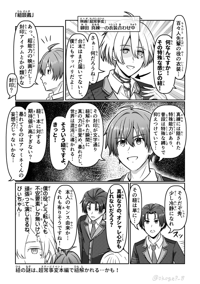 okogeP_8☆quiet followDONE【漫画】超常事変の例の紐に対して、クラファ内で適当な見解を述べ合う話です。多分正解じゃない気がする。兎にも角にも、真練と百々人のメンタルが心配なので何とか本編でHappyEndになって欲しい… #SideM Tap to full screen (size:1748x2480).Repost is prohibited Let's send reactions! freqpopularsnackothersPayment processing Replies from the creator Follow creator you care about!☆quiet follow okogeP_8DONE某都市伝説を解体するアレのパロディシリーズ、C.FIRSTセンターの天峰 秀が活躍するストーリーです。元ネタの大きなネタバレは無い&元ネタが分からなくても大丈夫なように作っていますが、少しでも気になる方は ご注意くださいませ。一応の全体ストーリーは考えているので、少しずつ追加していく感じでいく予定です。(最終更新:2015/10/19 NoriNoriTalk編を追加) 28 okogeP_8DONE(漫画)パバステや新刊のおまけペーパーに付けていた漫画です。振り付けのポーズの一部が「番組のお便りの宛先はコチラ!」的なやつに見えなくもないよな…って発想だけで描きました。 okogeP_8MENU【8/30 パバステ現地4th】お品書き8/30 Passion! VIRTU@L STAGE!現地4th in多摩【や28】焼きたて おこげ本舗パバステ4thのお品書きです。新刊の他、特典ポストカードやグッズなども用意しております。良ければお立ち寄りくださると嬉しいです!新刊のサンプルはこちら↓https://poipiku.com/5392936/12115233.html 2 okogeP_8INFO【パバステ現地4th】新刊サンプル『サイコーひとくちアラカルト』全年齢/A5/本文70p/CPなし/800円(会場頒布価格)8/30 Passion! VIRTU@L STAGE!現地4th in多摩にて頒布予定。315プロオールスター(49人+α)のひとくちサイズ漫画の詰め合わせ本です。49人それぞれが主役の1P漫画の他描きおろしや未公開作品なども多数収録。※後日通販予定 8 okogeP_8DOODLEクラファ最新ストーリーで、例の質問に対する反応が三者三様で良かったなーって思った勢いで描いたやつです。それはそれとして、Pは何であんなにハッチャケてたんだよ… 2 okogeP_8DONE鋭心先輩が応援団衣装のアレについてWhyな疑問を抱くお話を描きました。H◯Vコラボネタ。あのデザイン可愛いくて大好きなんですが、本人的には「???」な状態になってそうだなと思ったので… 3 related works ご飯ヶ竹吾郎DONEpkmnのエリトレの服 うしおDOODLE締まったタイを緩める~ のフレーズが頭から離れなくなったので描きました ご飯ヶ竹吾郎DONEカラーパレットでリクいただいたもの ユキニョDONEクリスマス前半戦お疲れ様でした~ つくね子PAST ぽーらDOODLEねむる翼mini NRGayaDOODLEコキュートス🤔 ねねこDOODLE #SideMせいじちゅん…… ユキニョDONEクリスマス前半戦お疲れ様でした~ recommended works ゆぶきもへPROGRESS今日も今日とて自分の絵柄が分からない うしおDONE #SideMれんれん!筋肉難しい… 表情豊かな子描くの楽しいなー うしおDONE翔太くん!で最後の一人でした~5月からくじで引いた順に描いててやっと全員!描けた!やったー! 2 ぽーらDOODLE🍫 3 煮込みうどんDONE確か16日に描き始めてたはずなんだけどおつかれその2 ぽーらDOODLE汗汗汗 うしおDONEあっちもこっちもガシャで言葉を失いかけたけど探偵最高ですね…車掌さん…白手袋… 2 xm_o_n_oxPAST推し~~~~~!!!!!!!!!!! 2 はくあPASTフランスパン四銃士 5